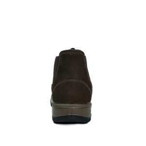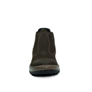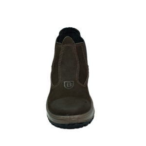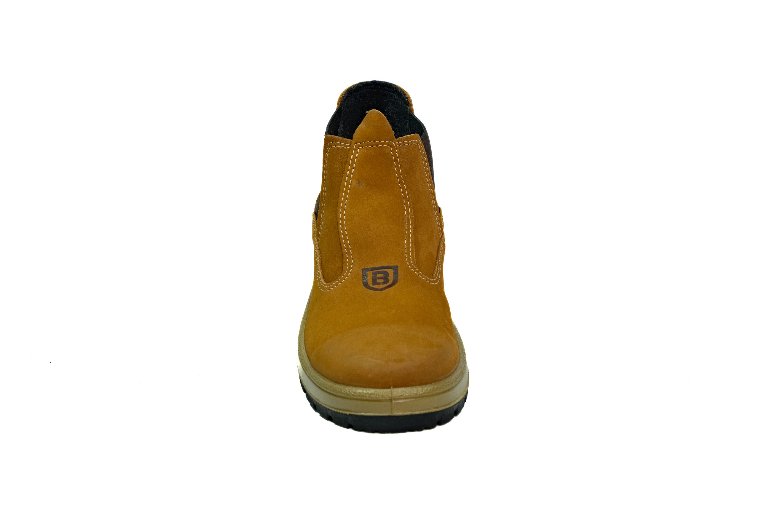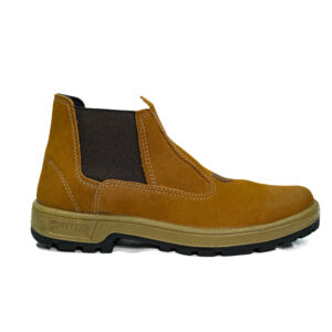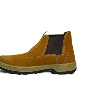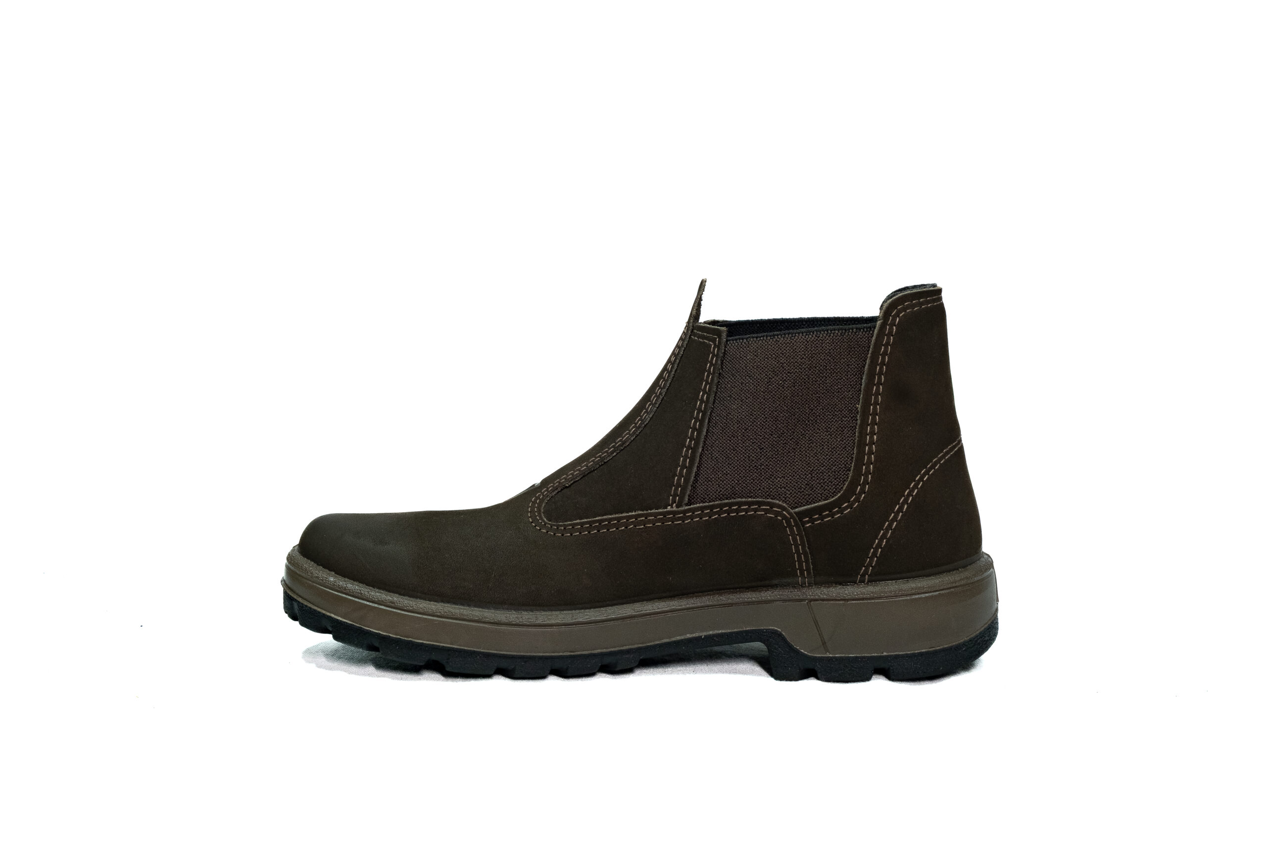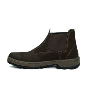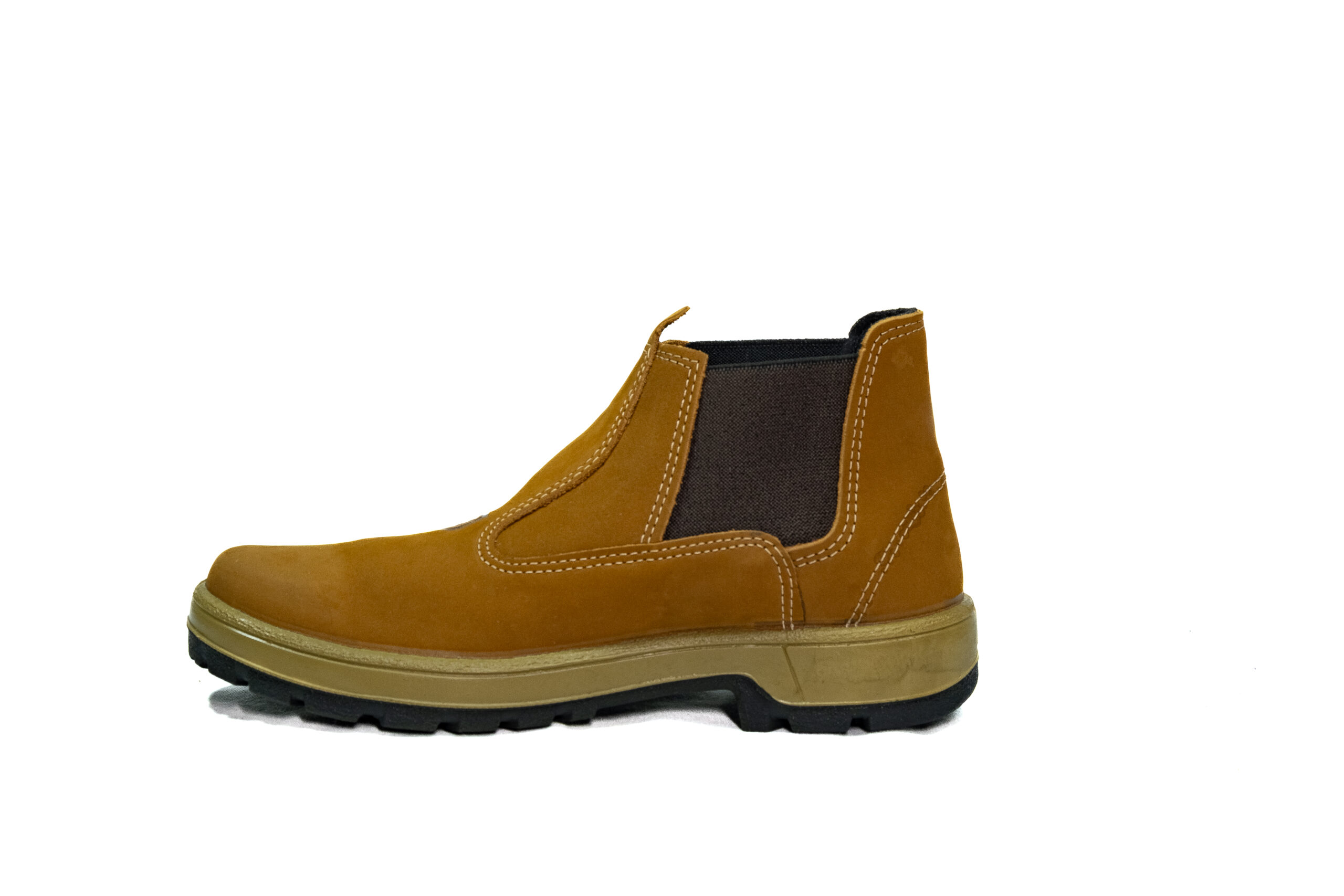 Botina de trabalho, com elástico, injetada em bi densidade em PU Poliéter, couro nobuck.