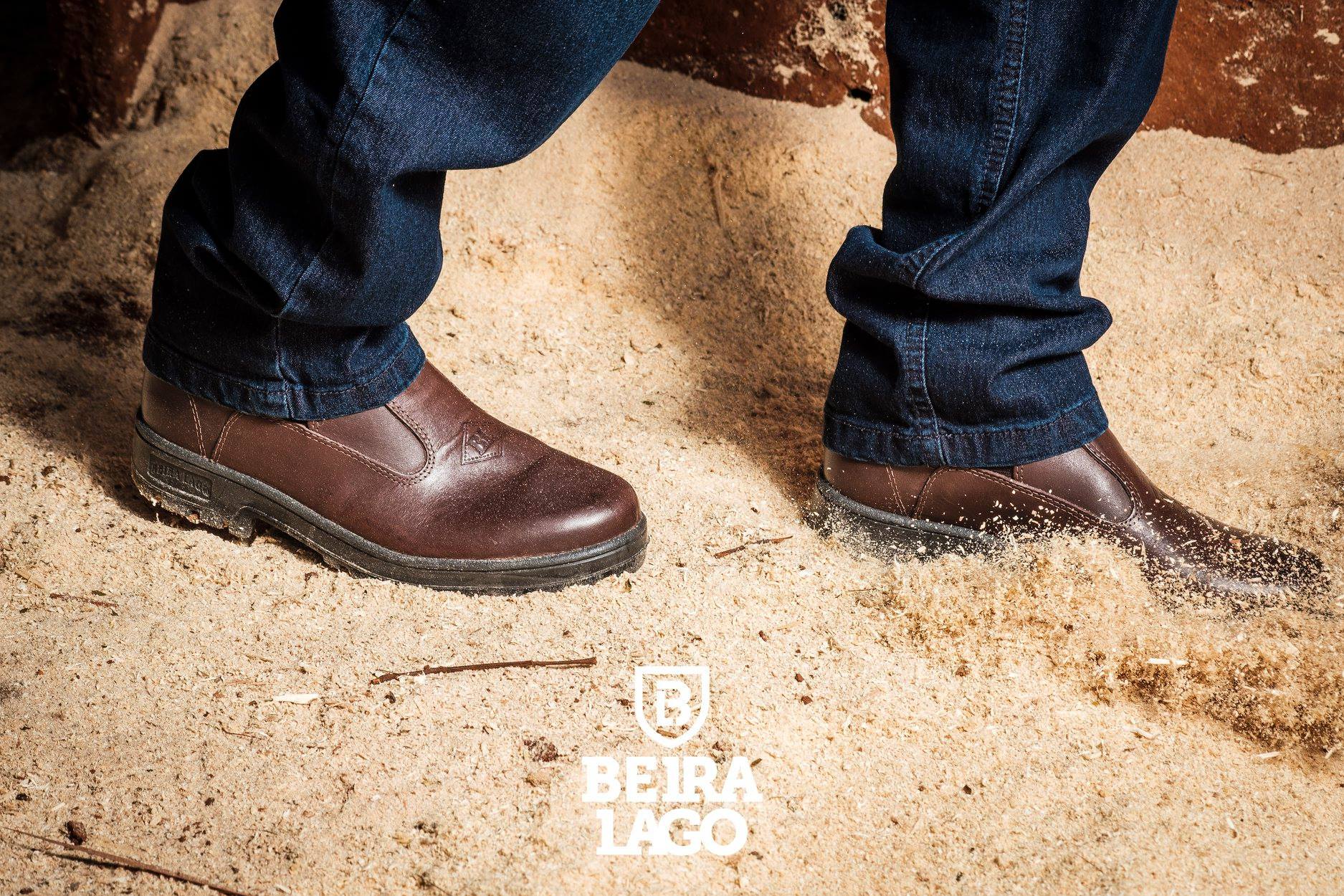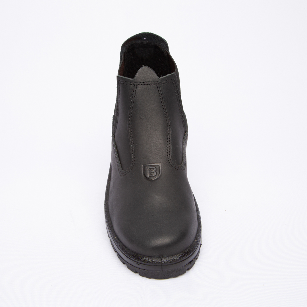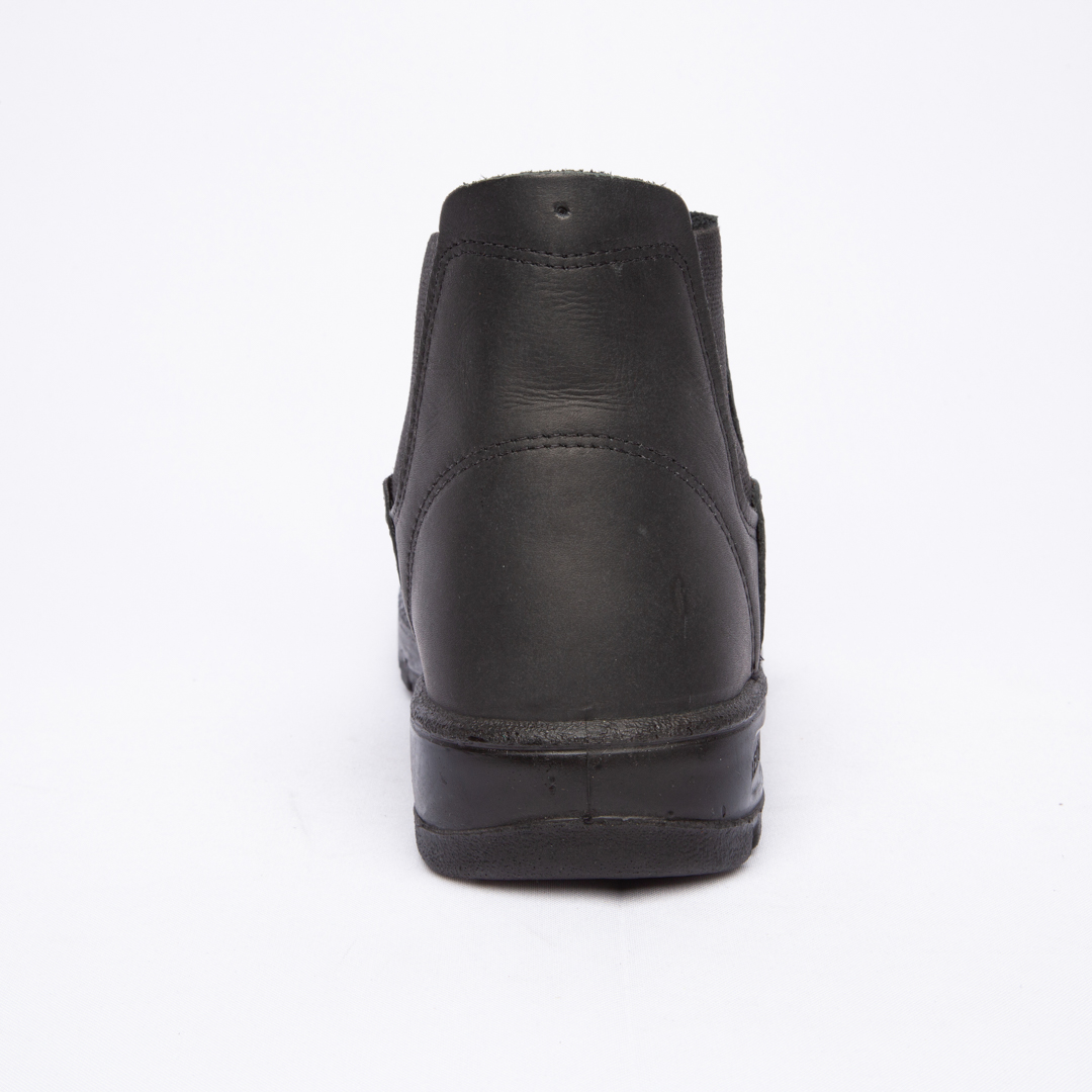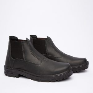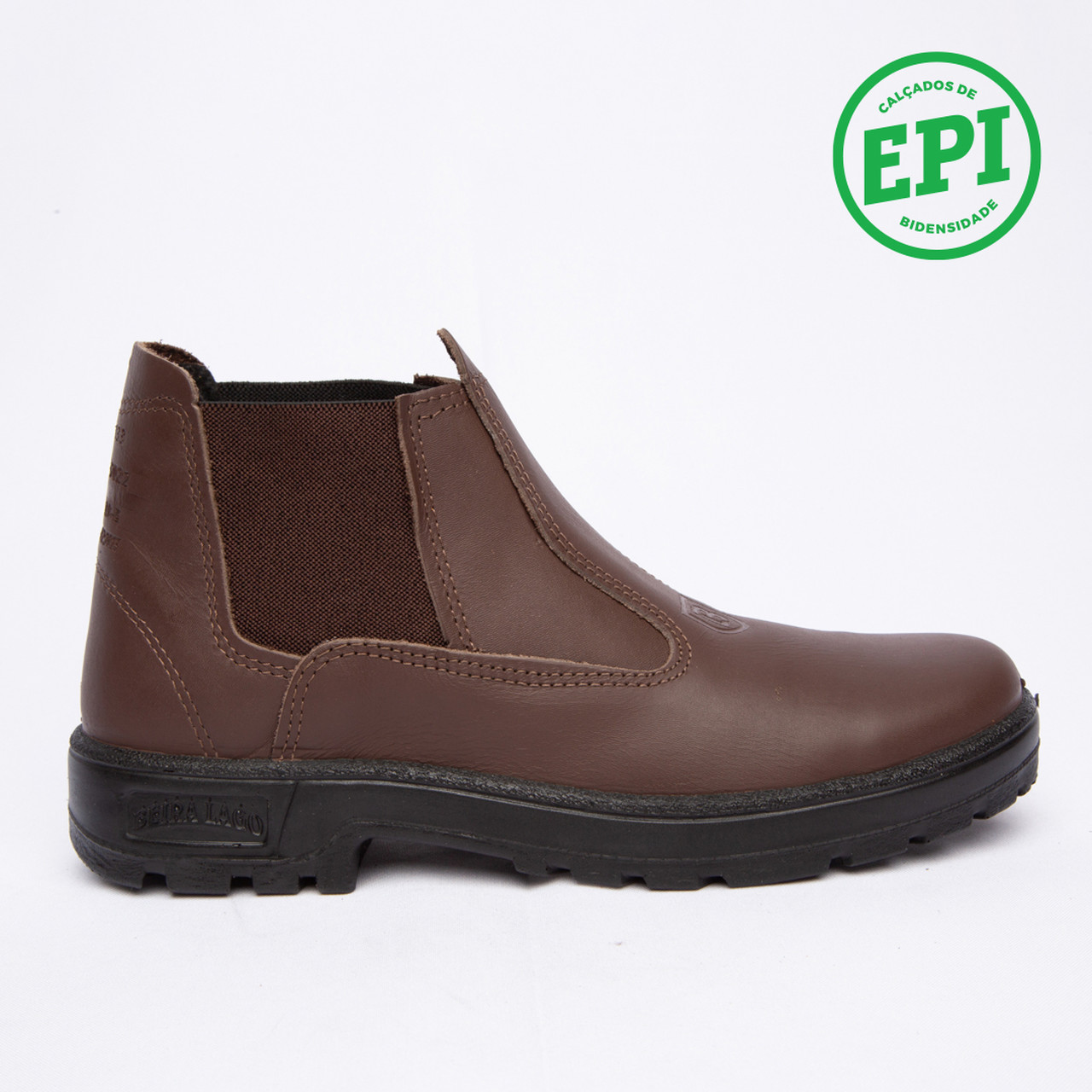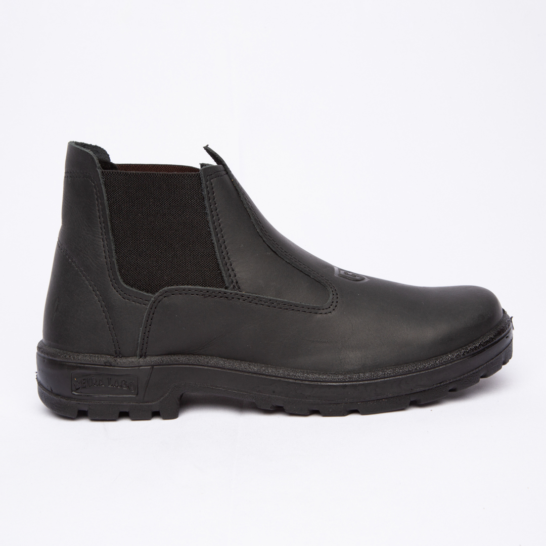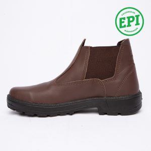 Botina de trabalho, com elástico, injetada em bi densidade em PU Poliéter, couro látego.