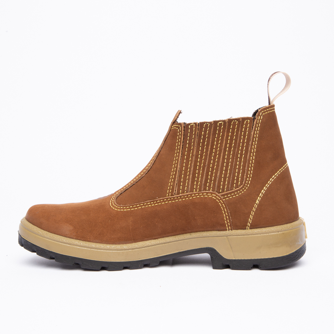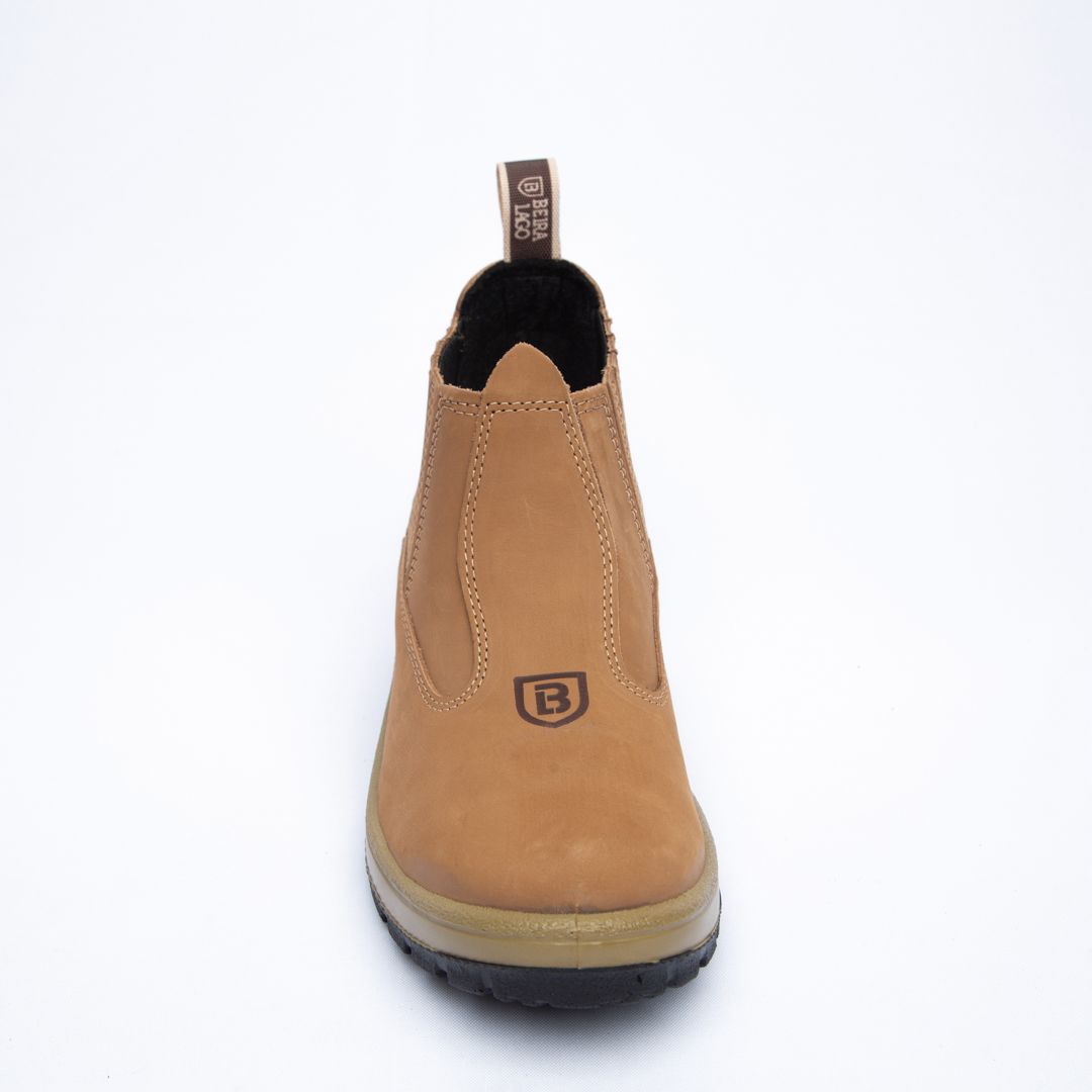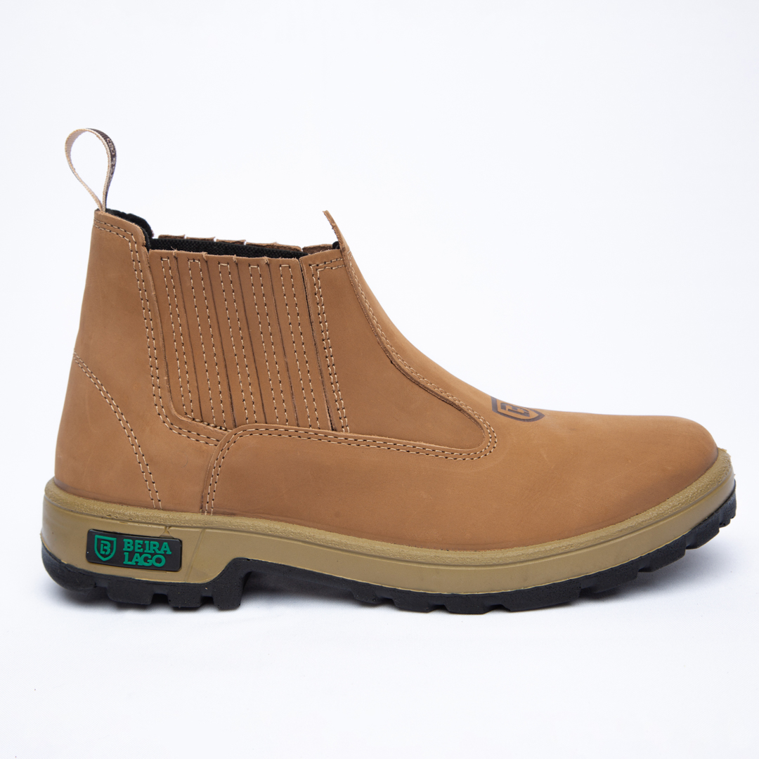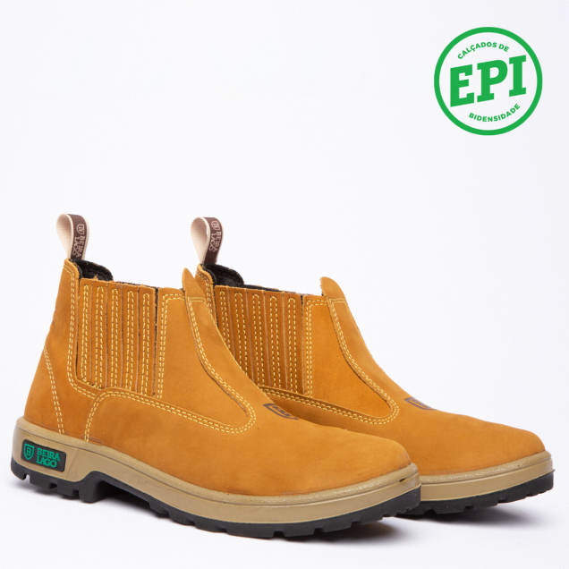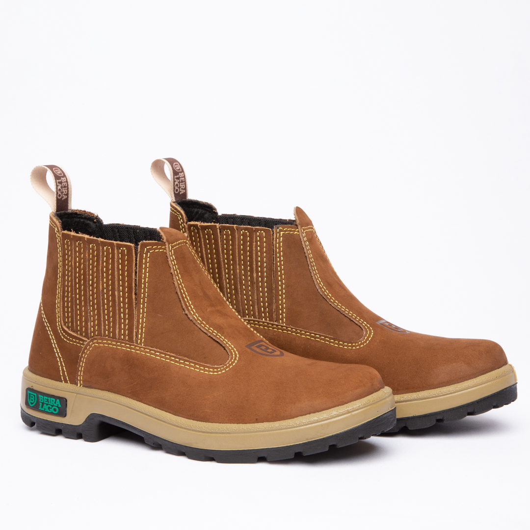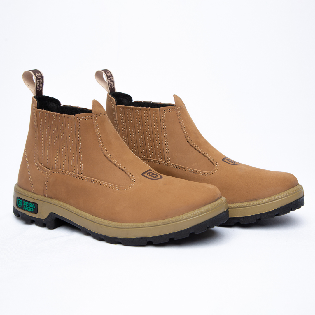 Botina em couro Nobuck, com solado PU Poliéter.