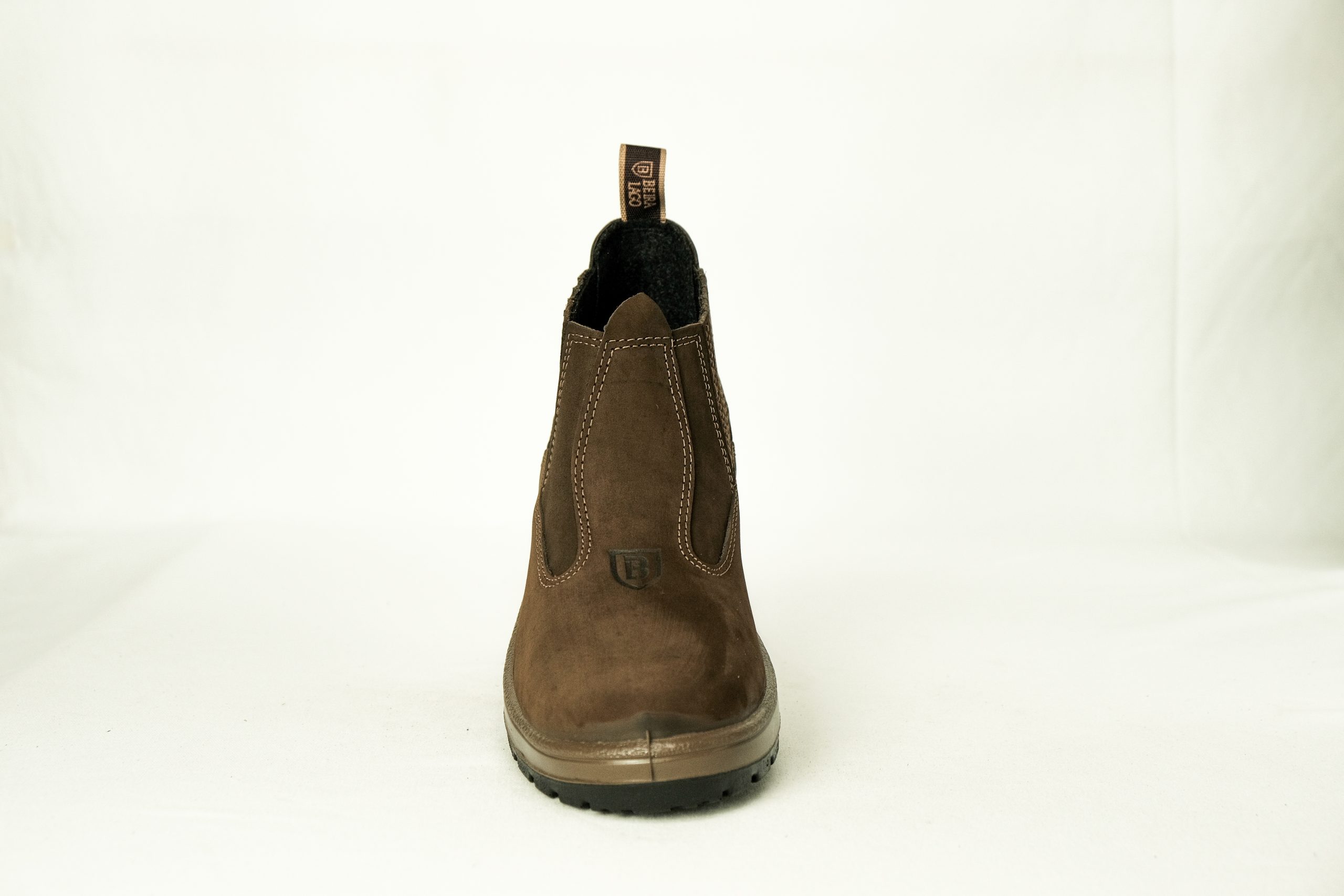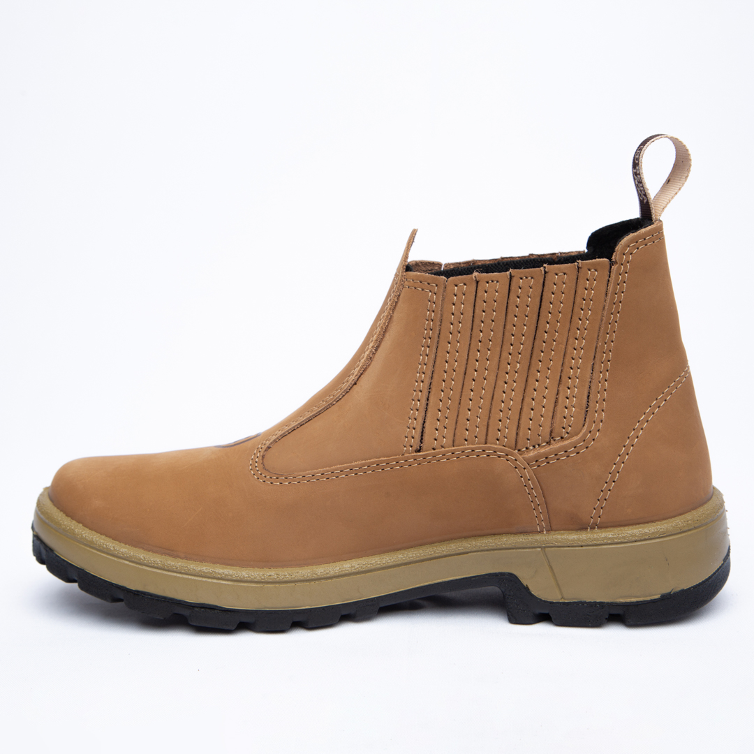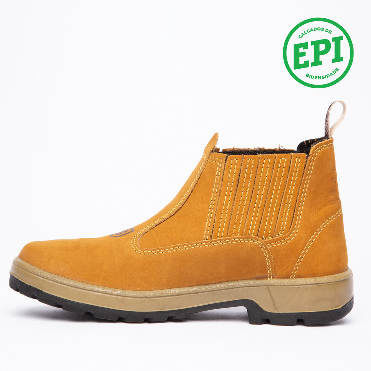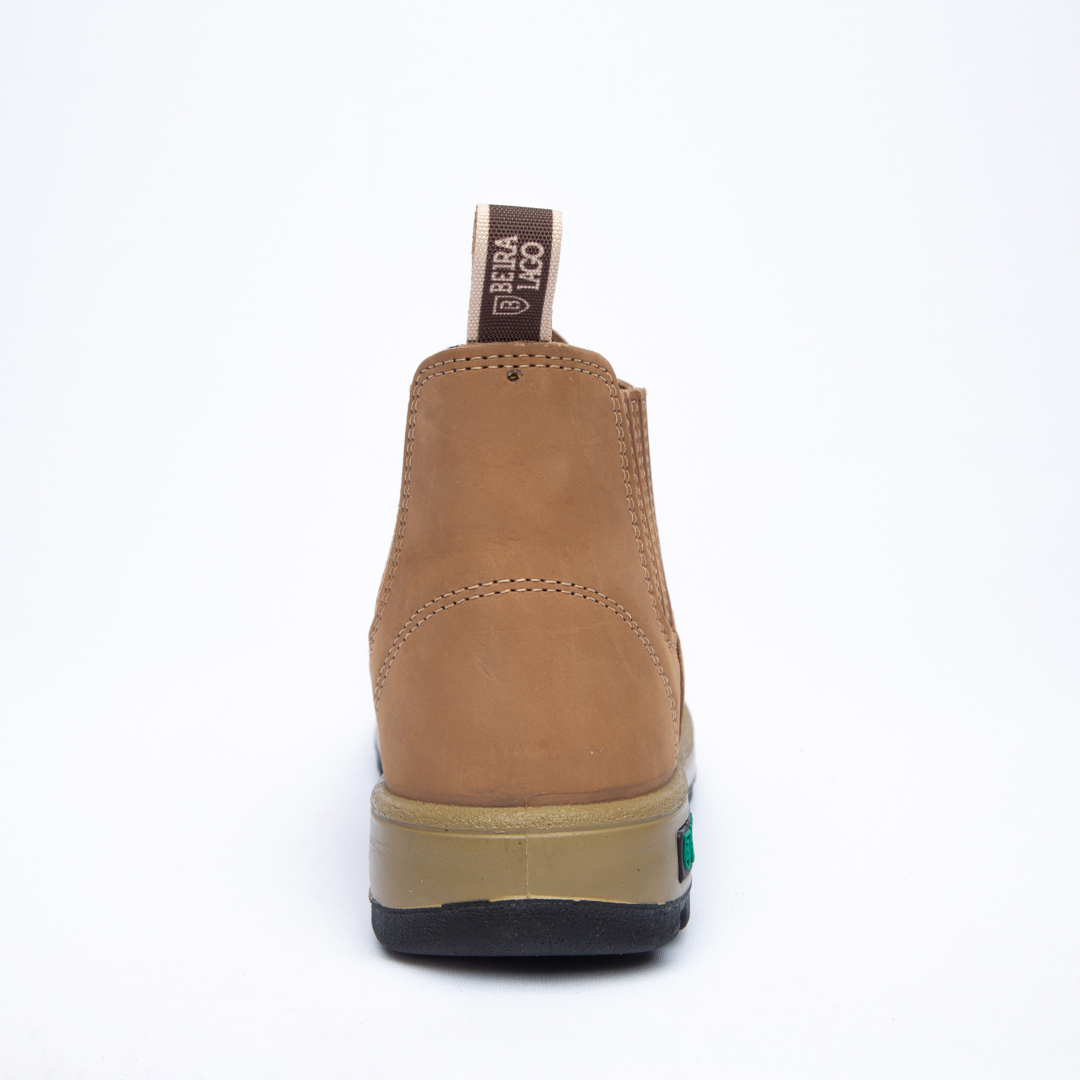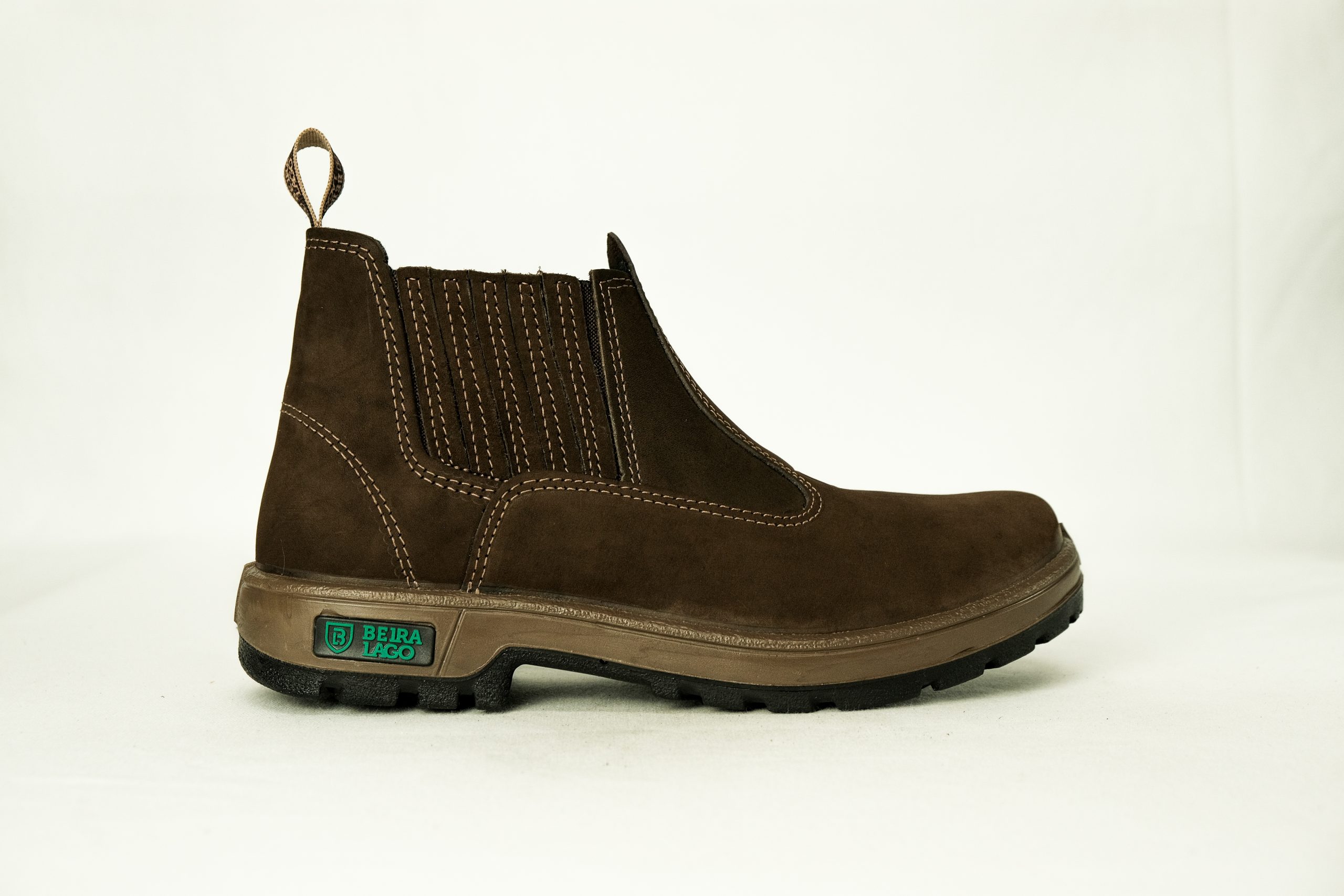 Botina em couro Nobuck, com solado PU Poliéter.