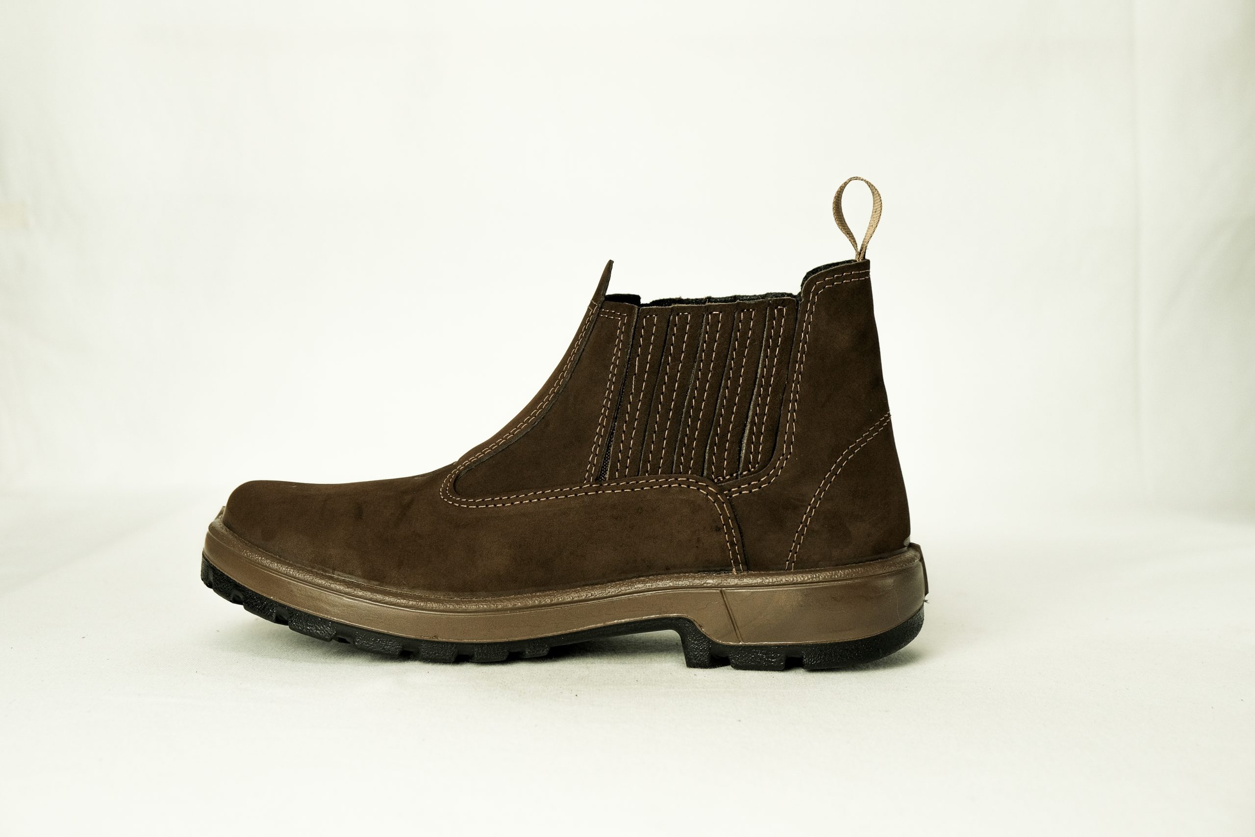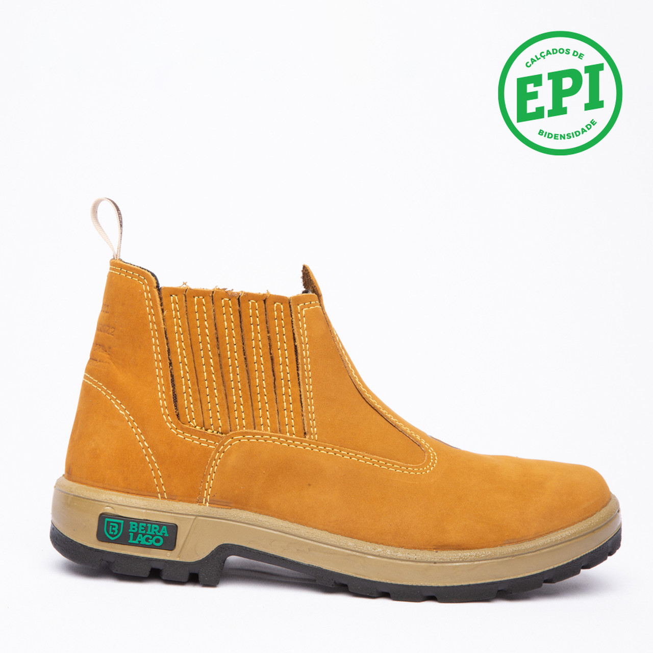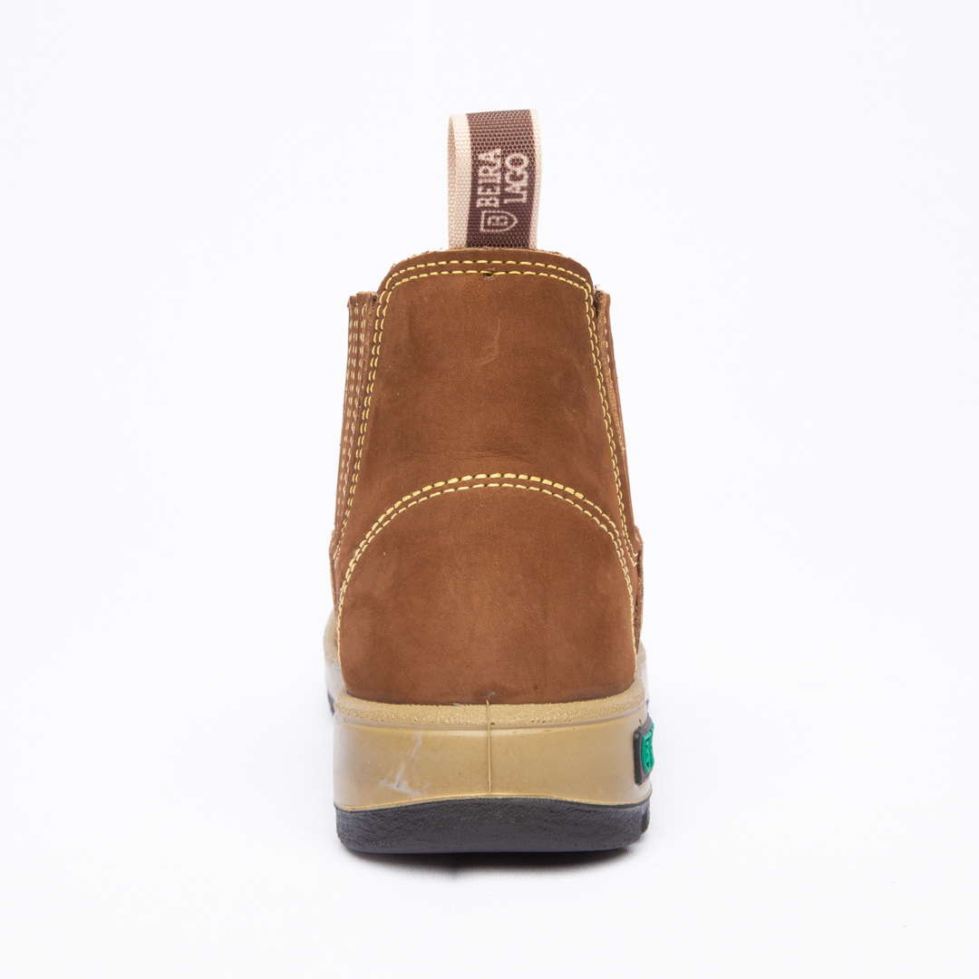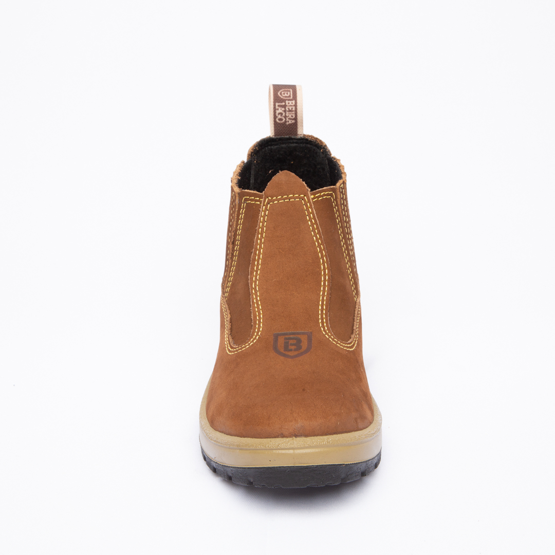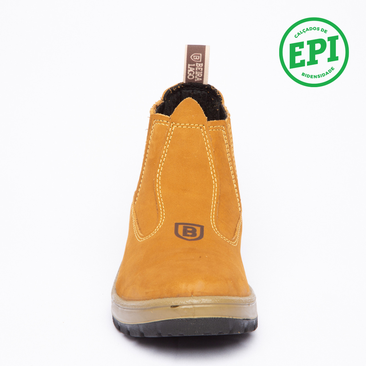 Botina em couro Nobuck, com solado PU Poliéter.