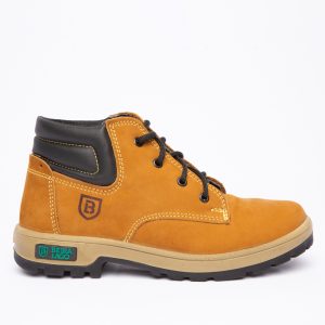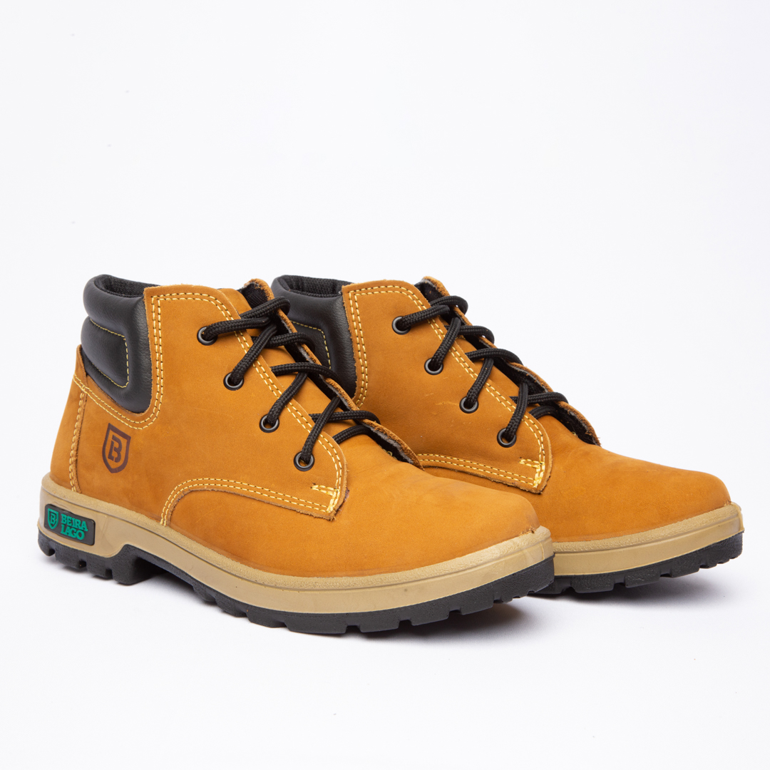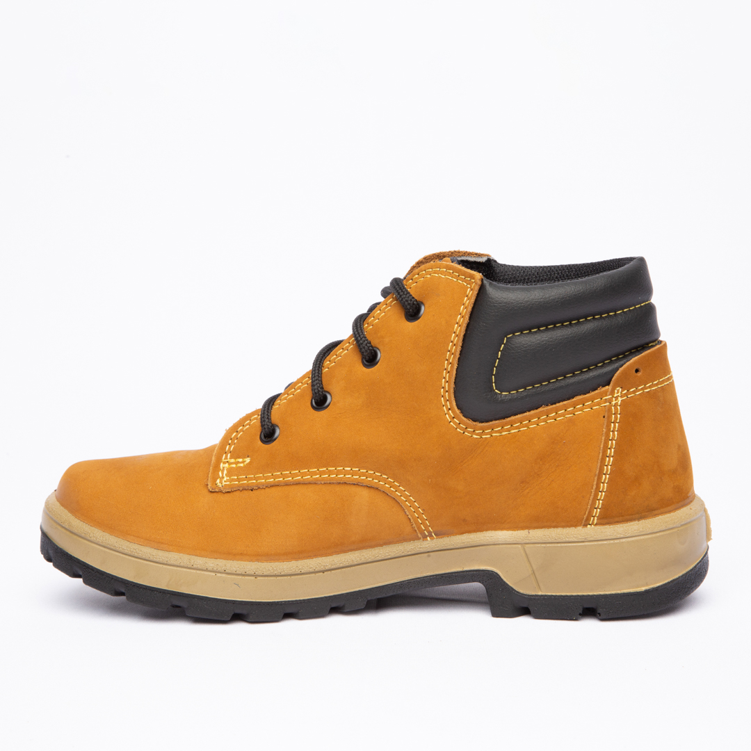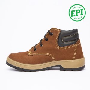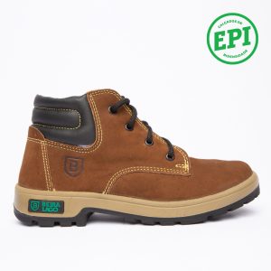 Coturno em couro Nobuck com solado PU Poliéter.