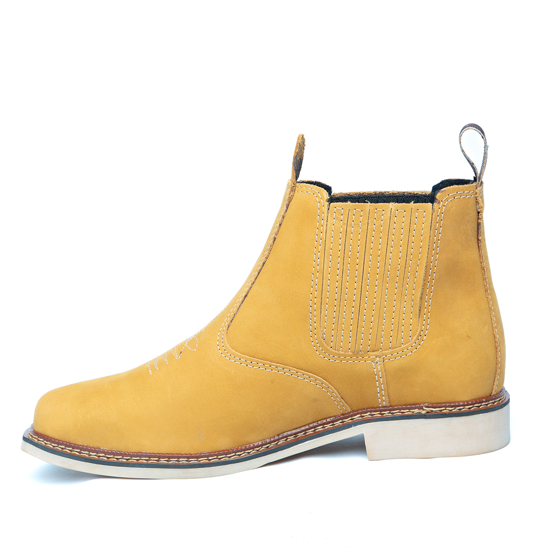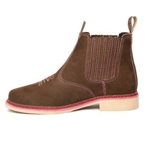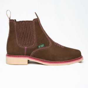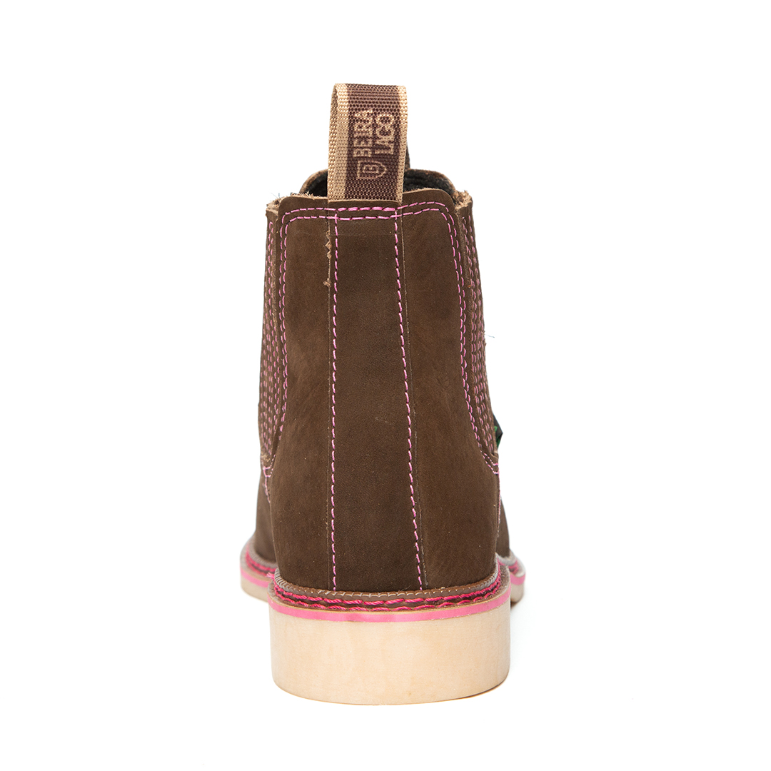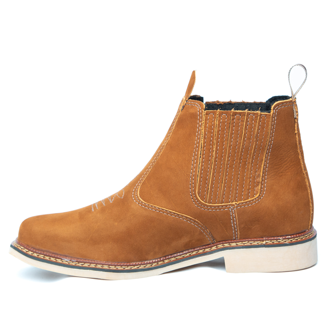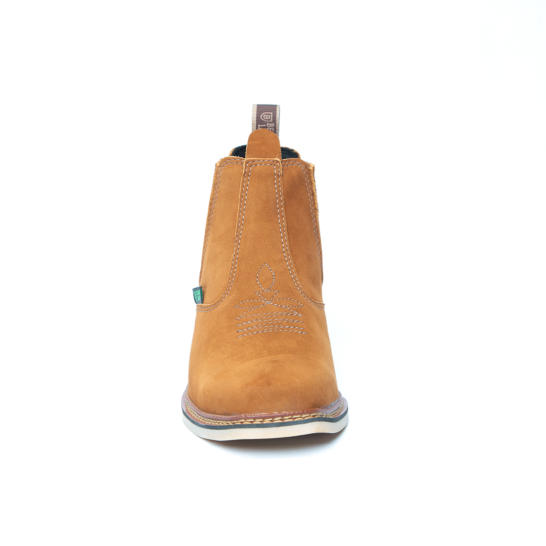 Botina bordada, com sanfona, couro nobuck e solado de látex.