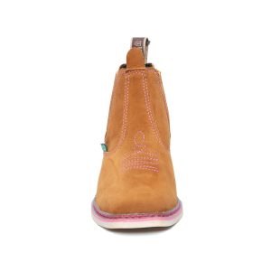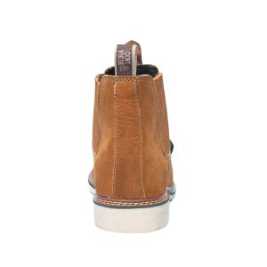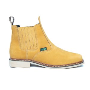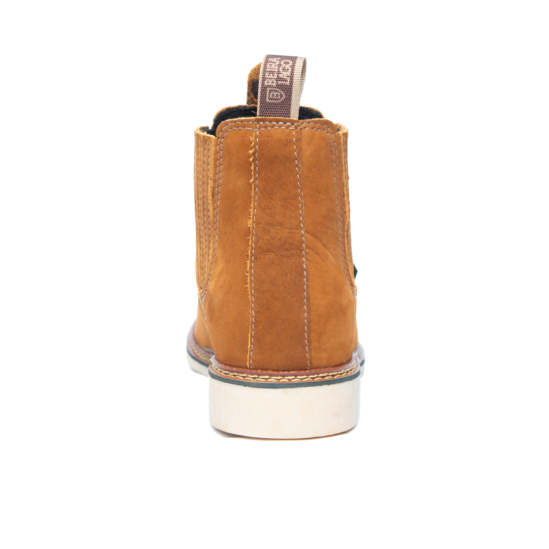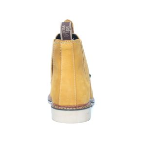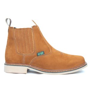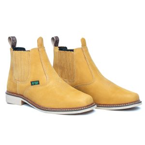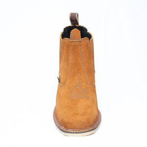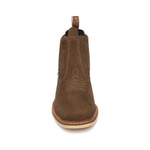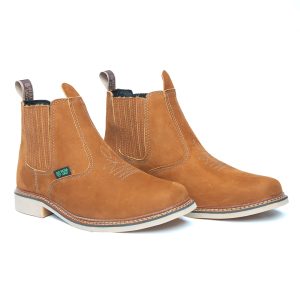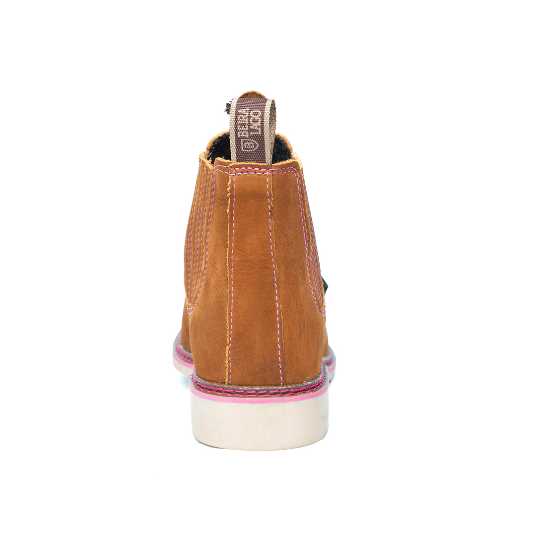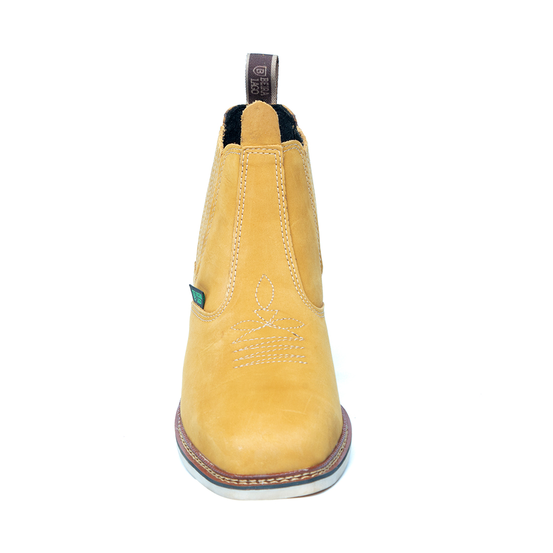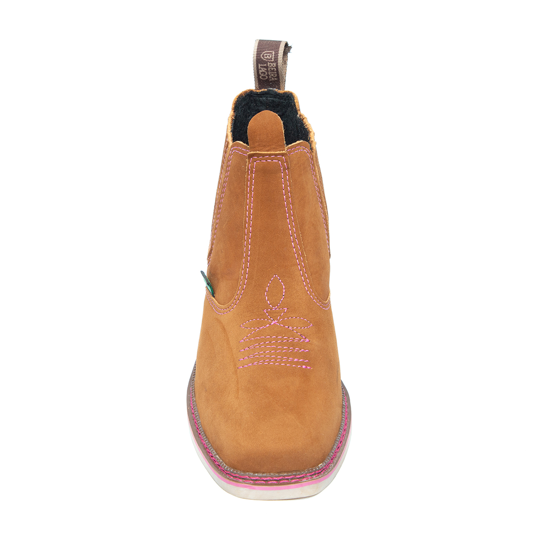 Botina bordada, com sanfona, couro nobuck e solado de látex.