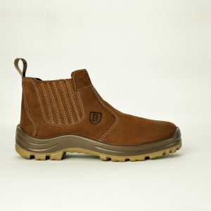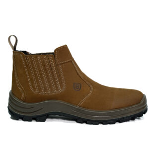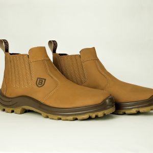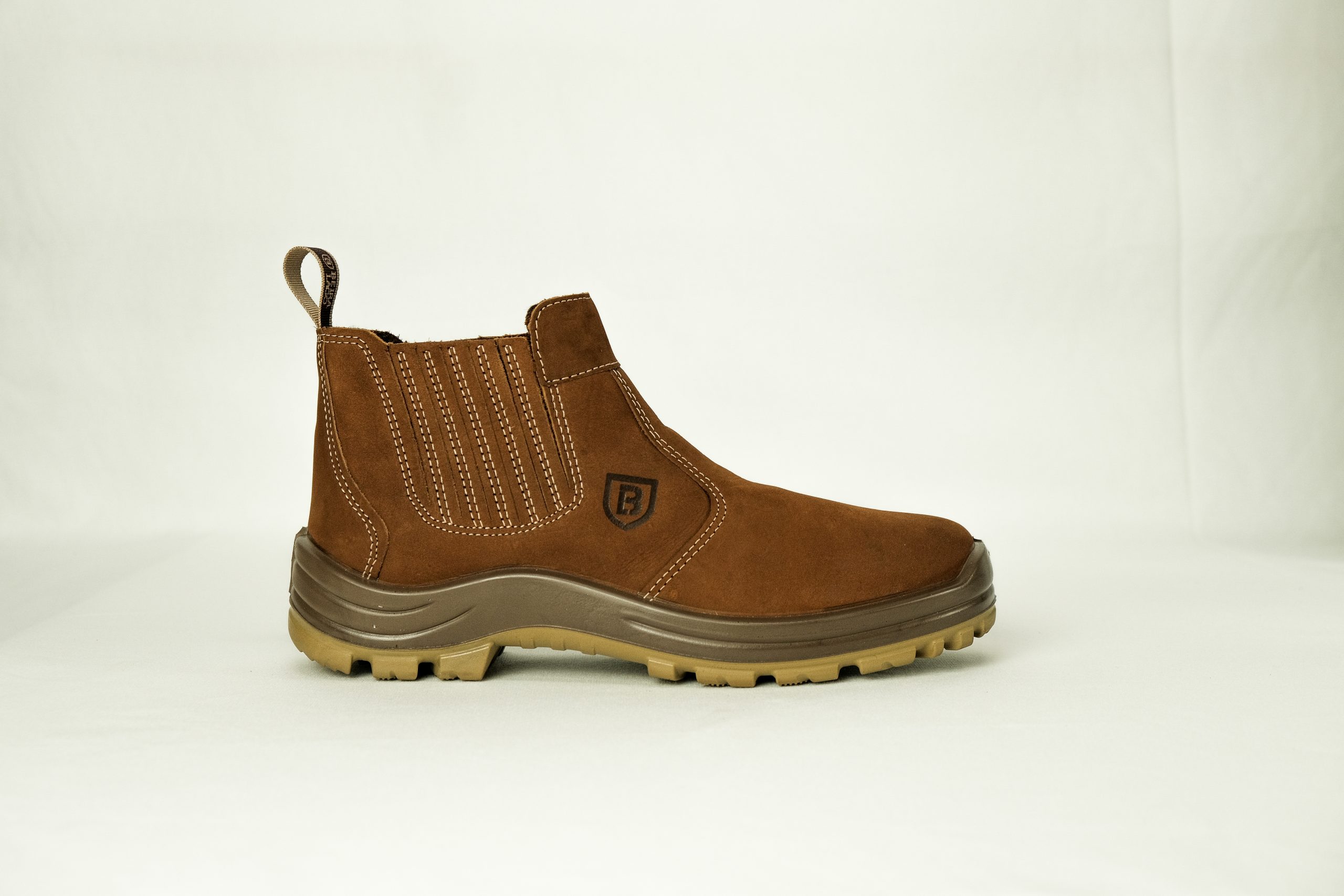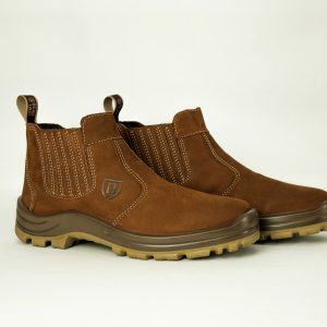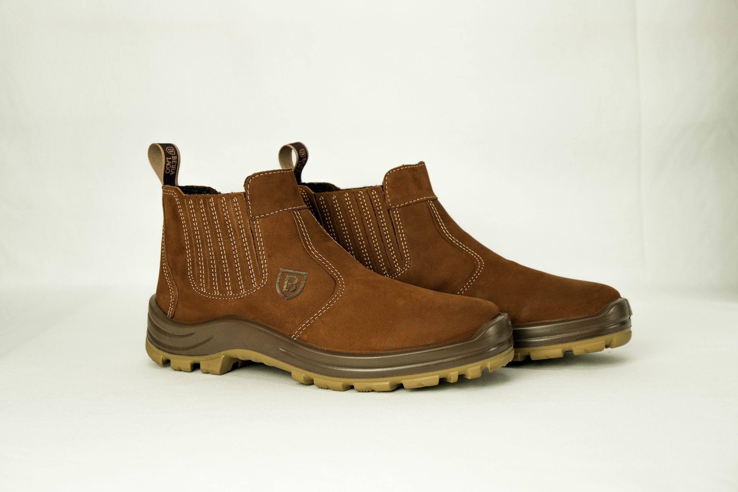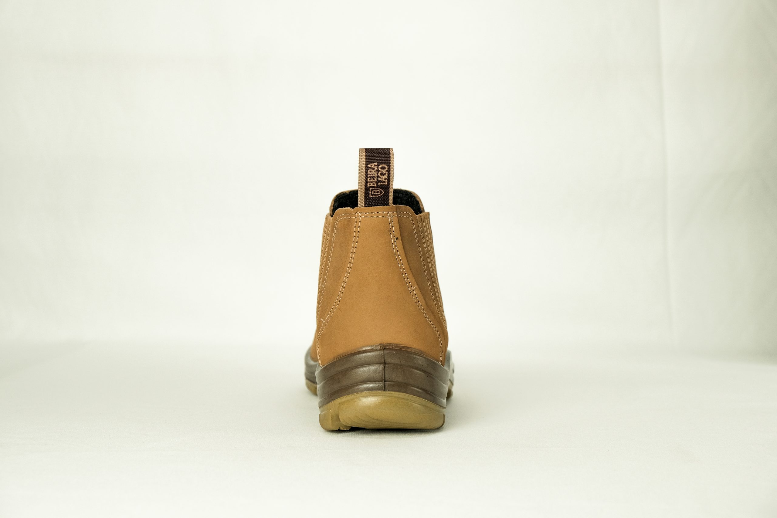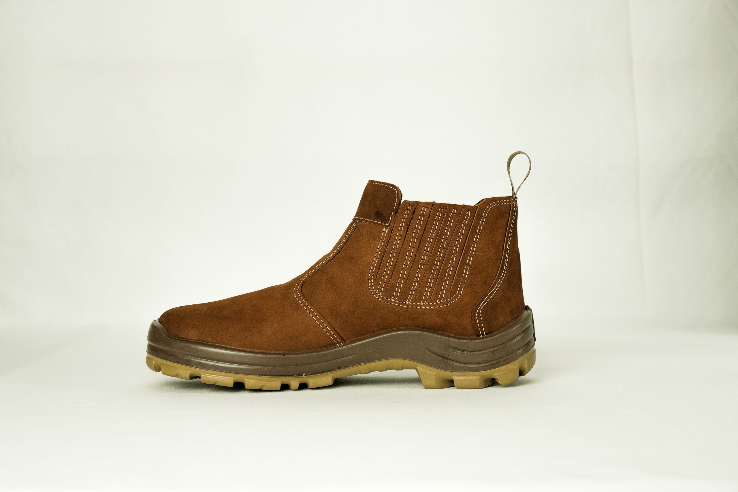 Botina sanfonada injetado bi densidade em PU Poliéter, couro nobuck.