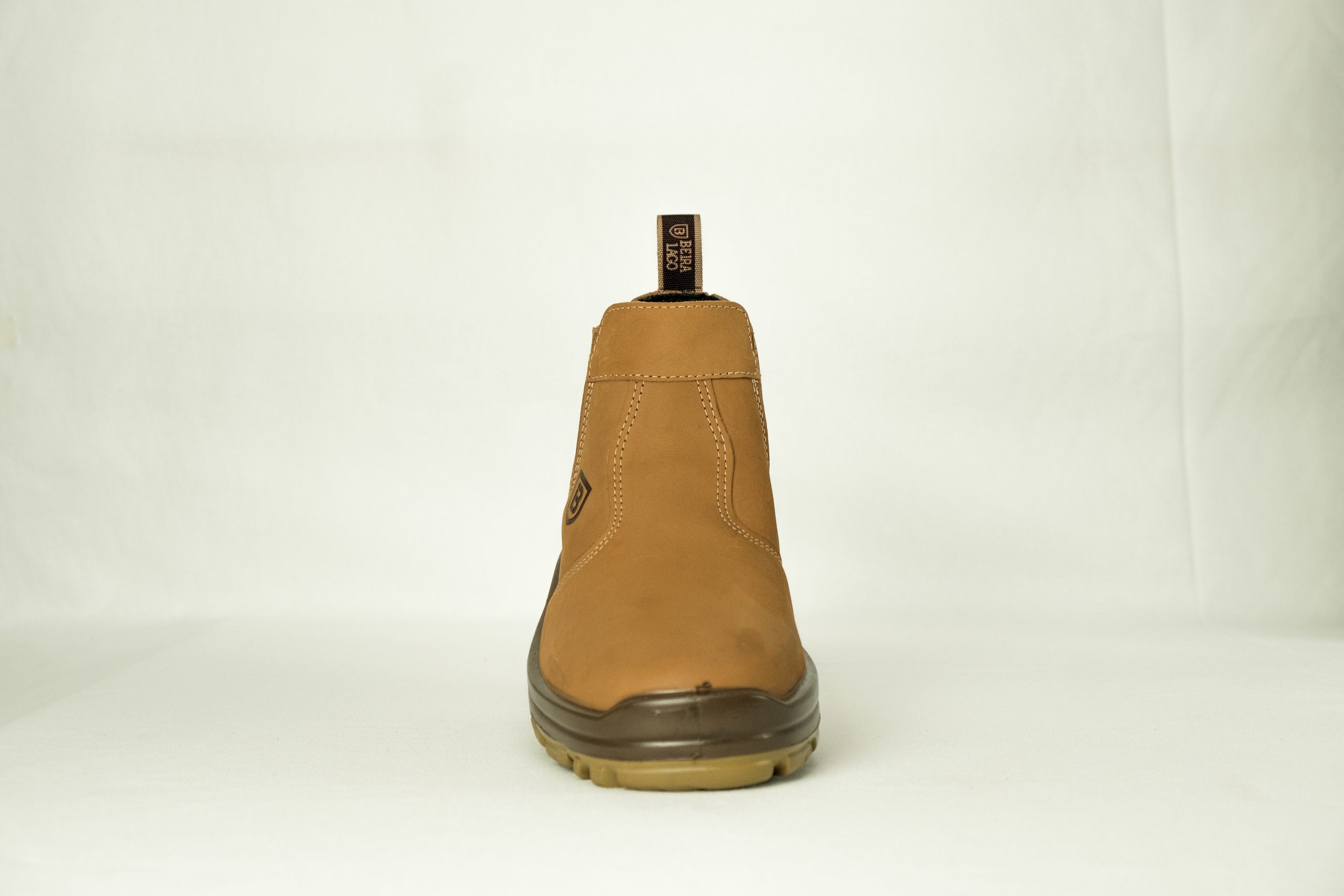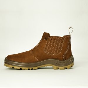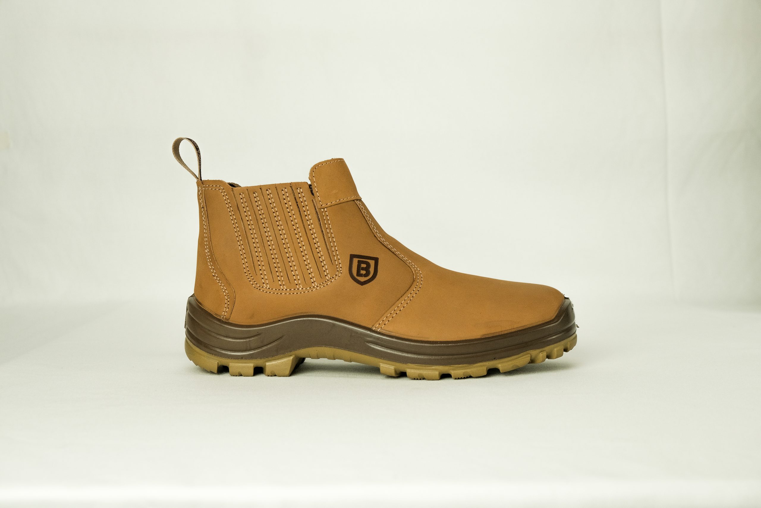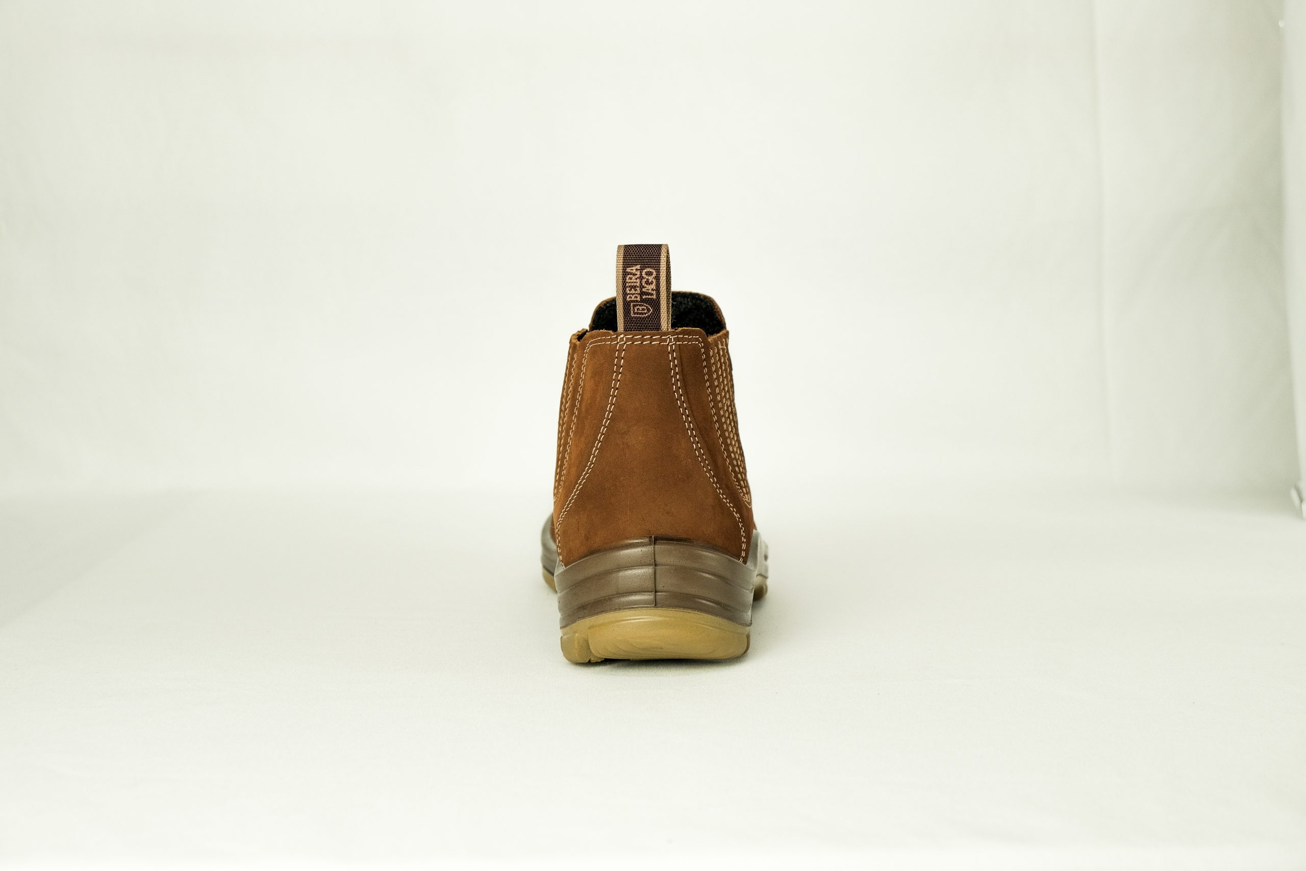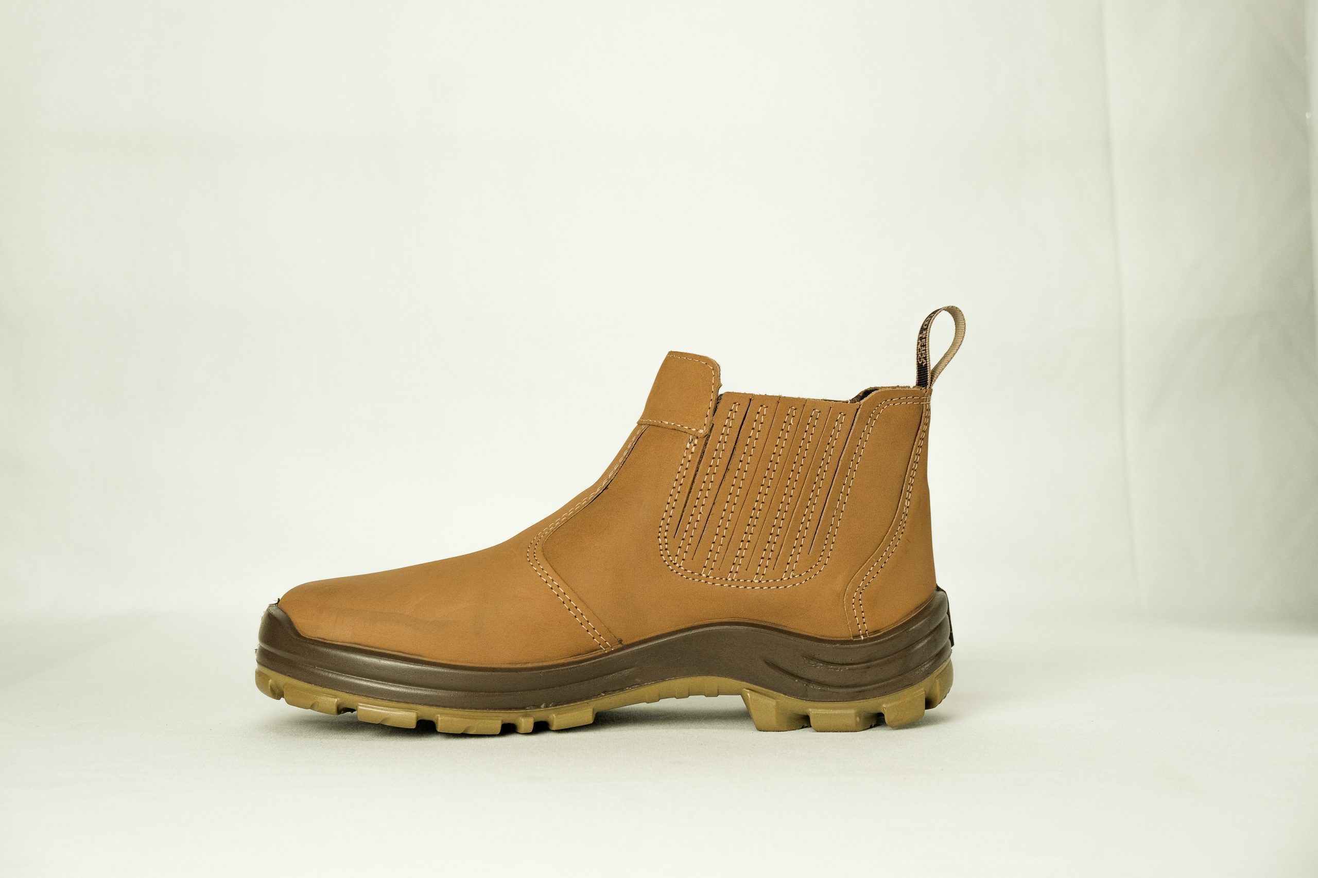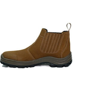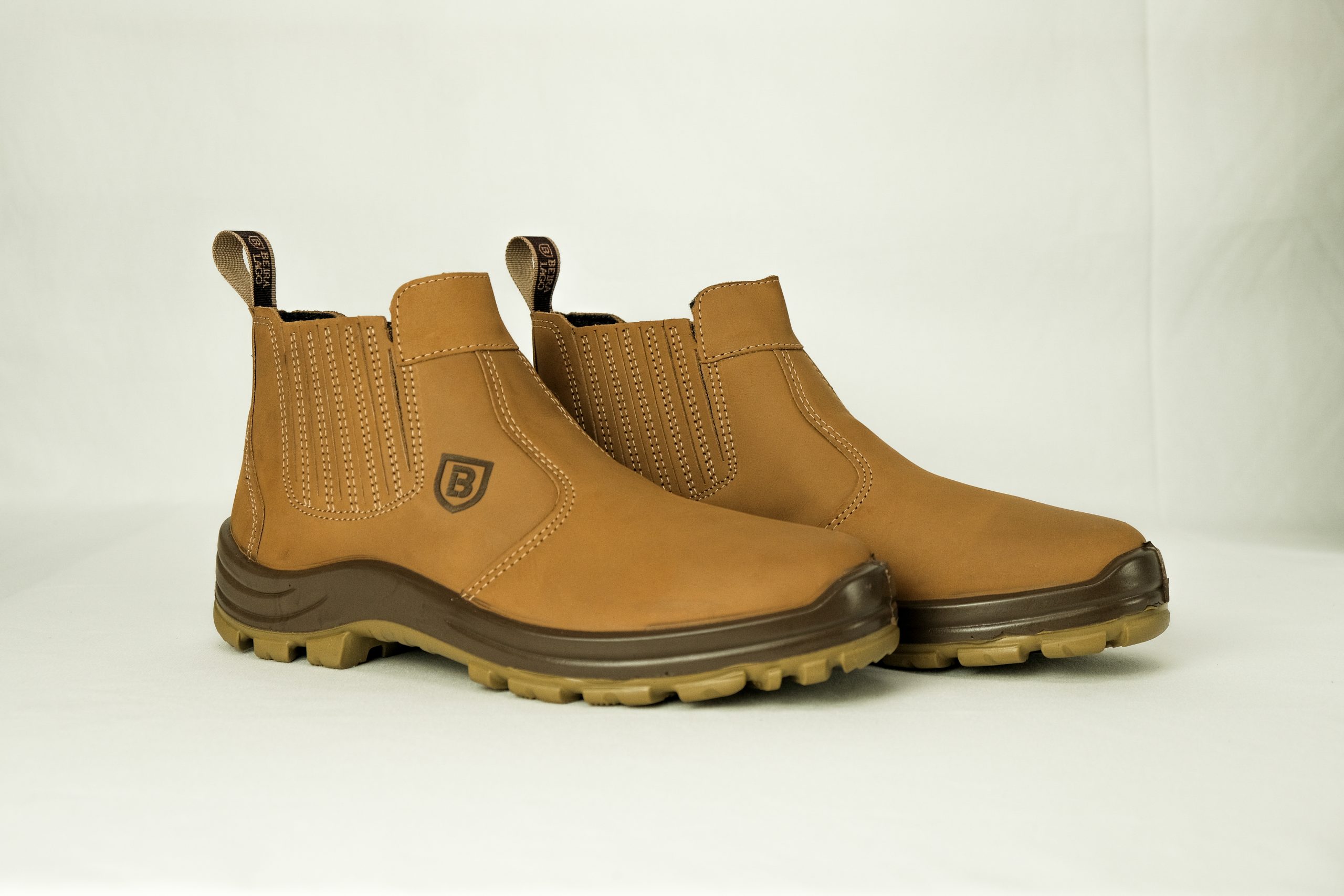 Botina sanfonada injetado bi densidade em PU Poliéter, couro nobuck.