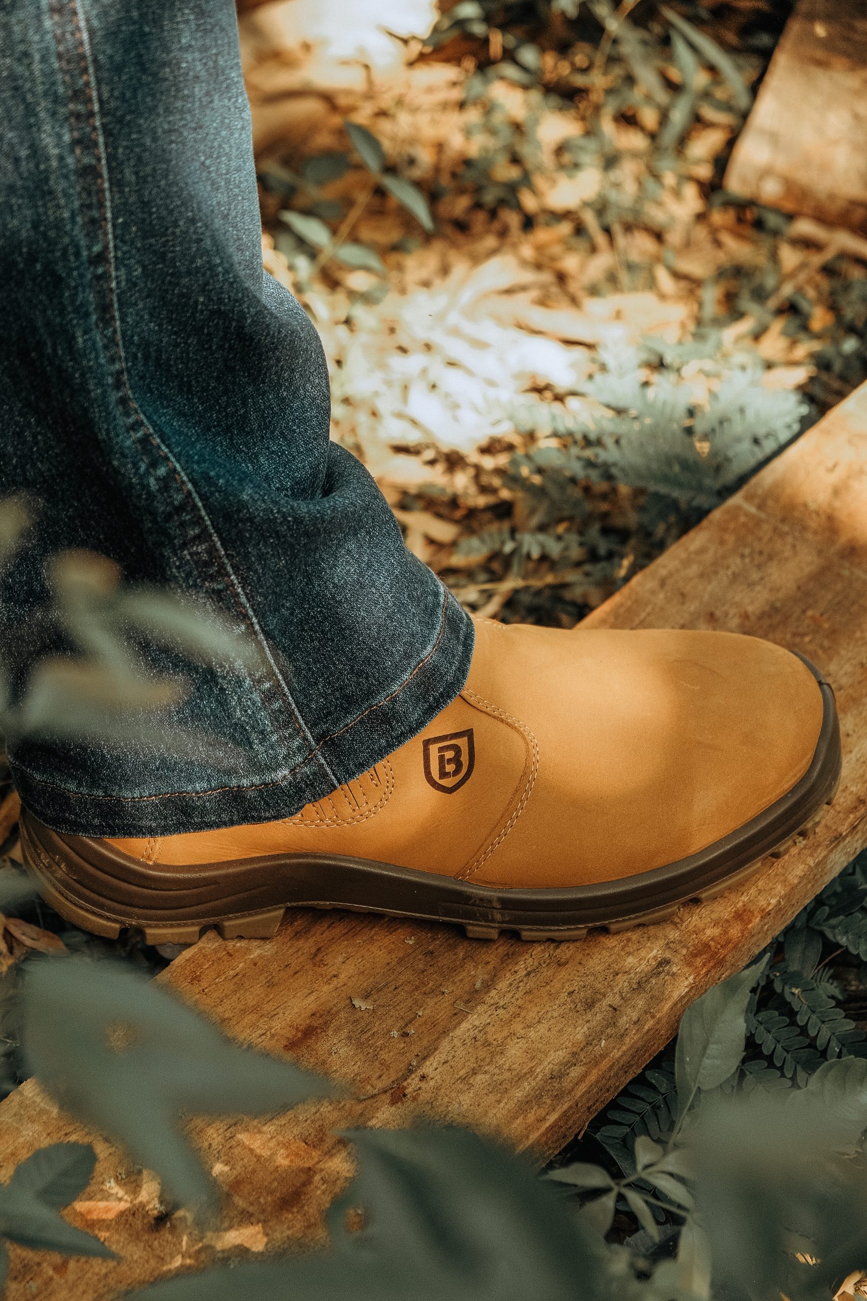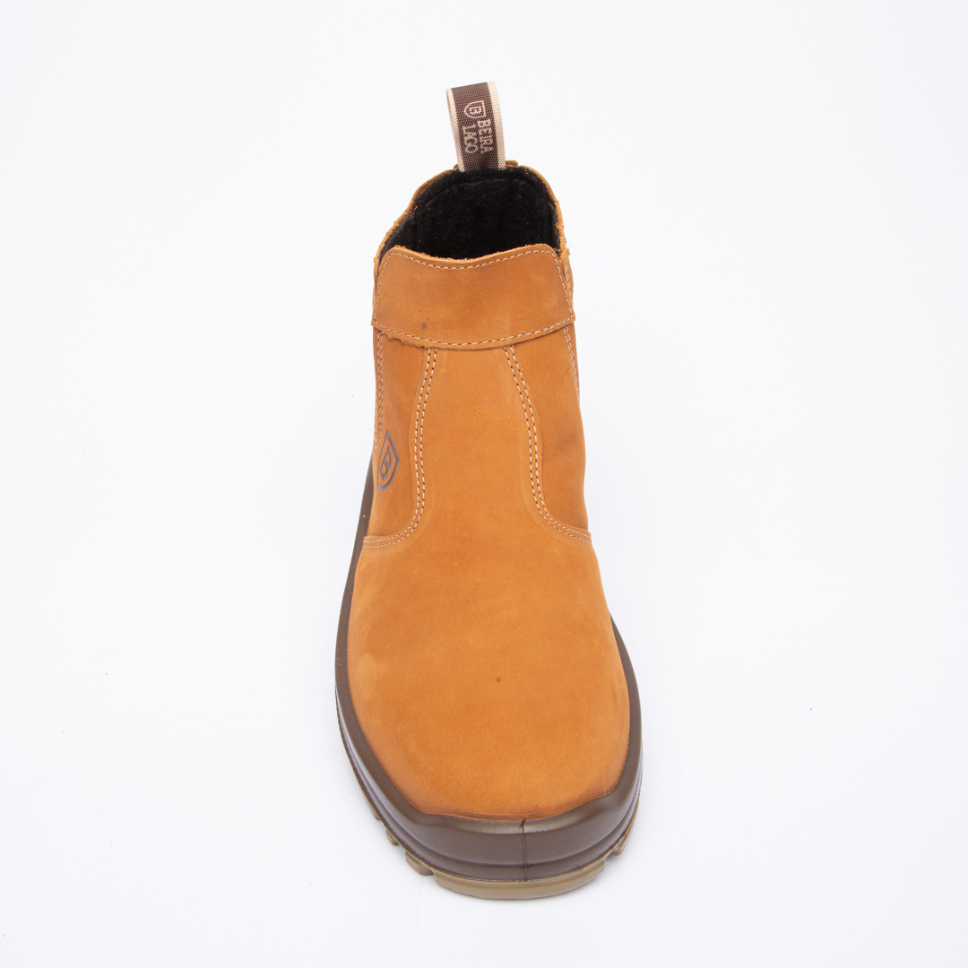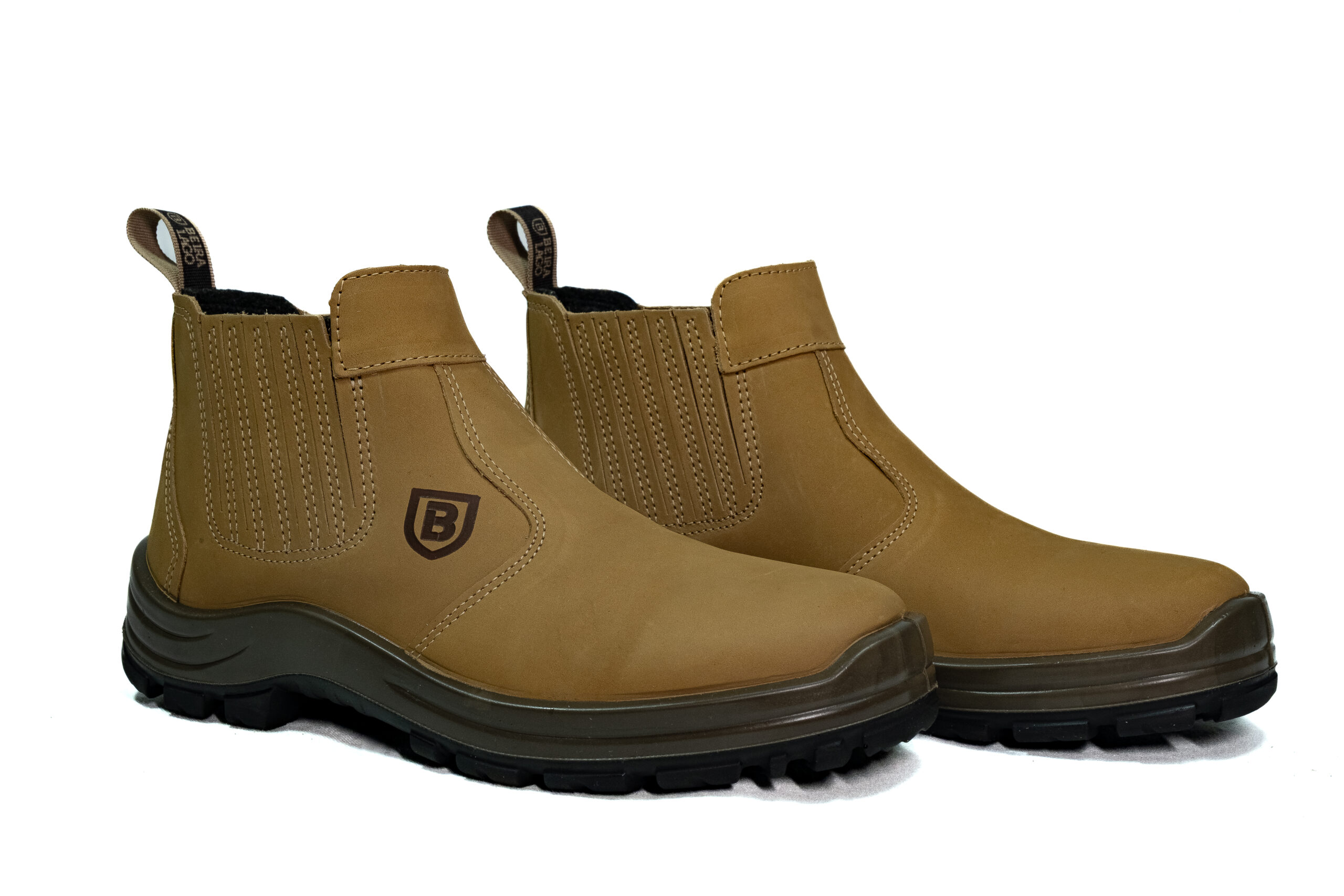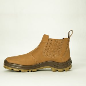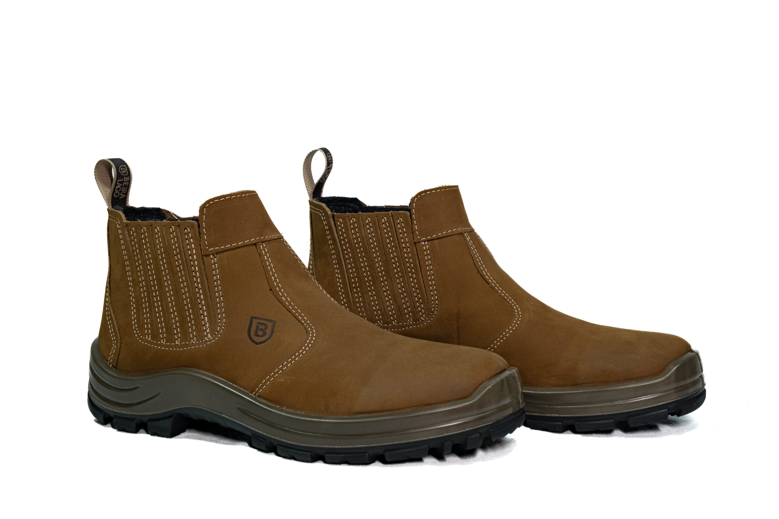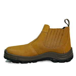 Botina sanfonada injetado bi densidade em PU Poliéter, couro nobuck.