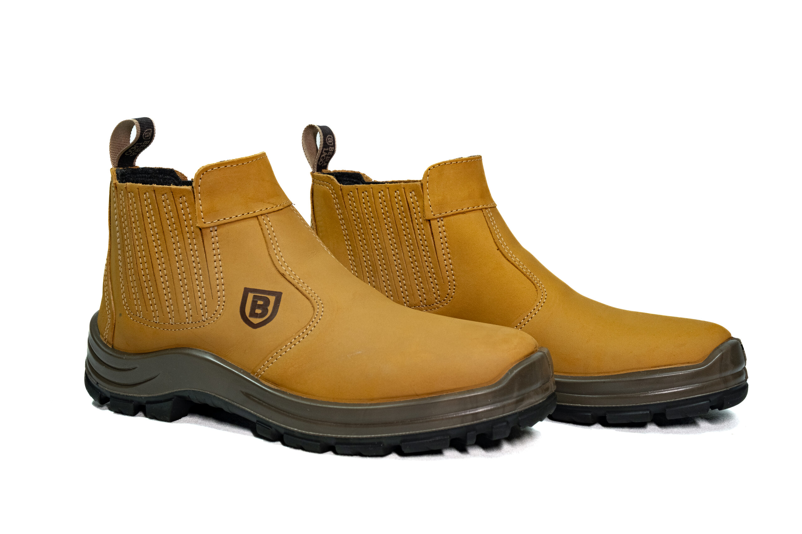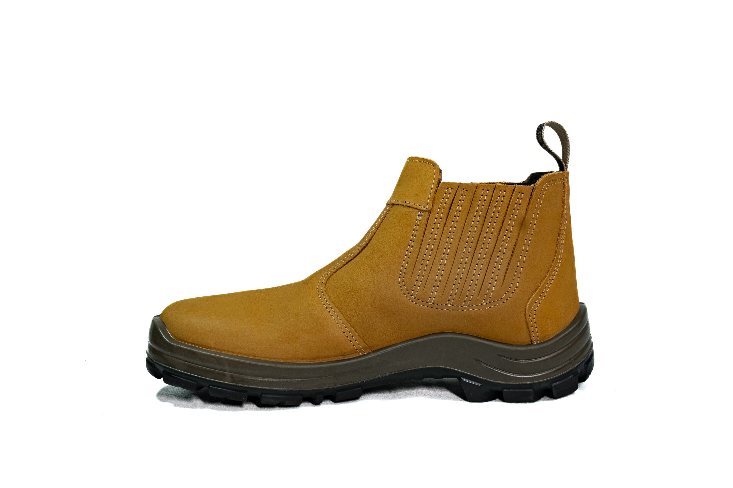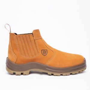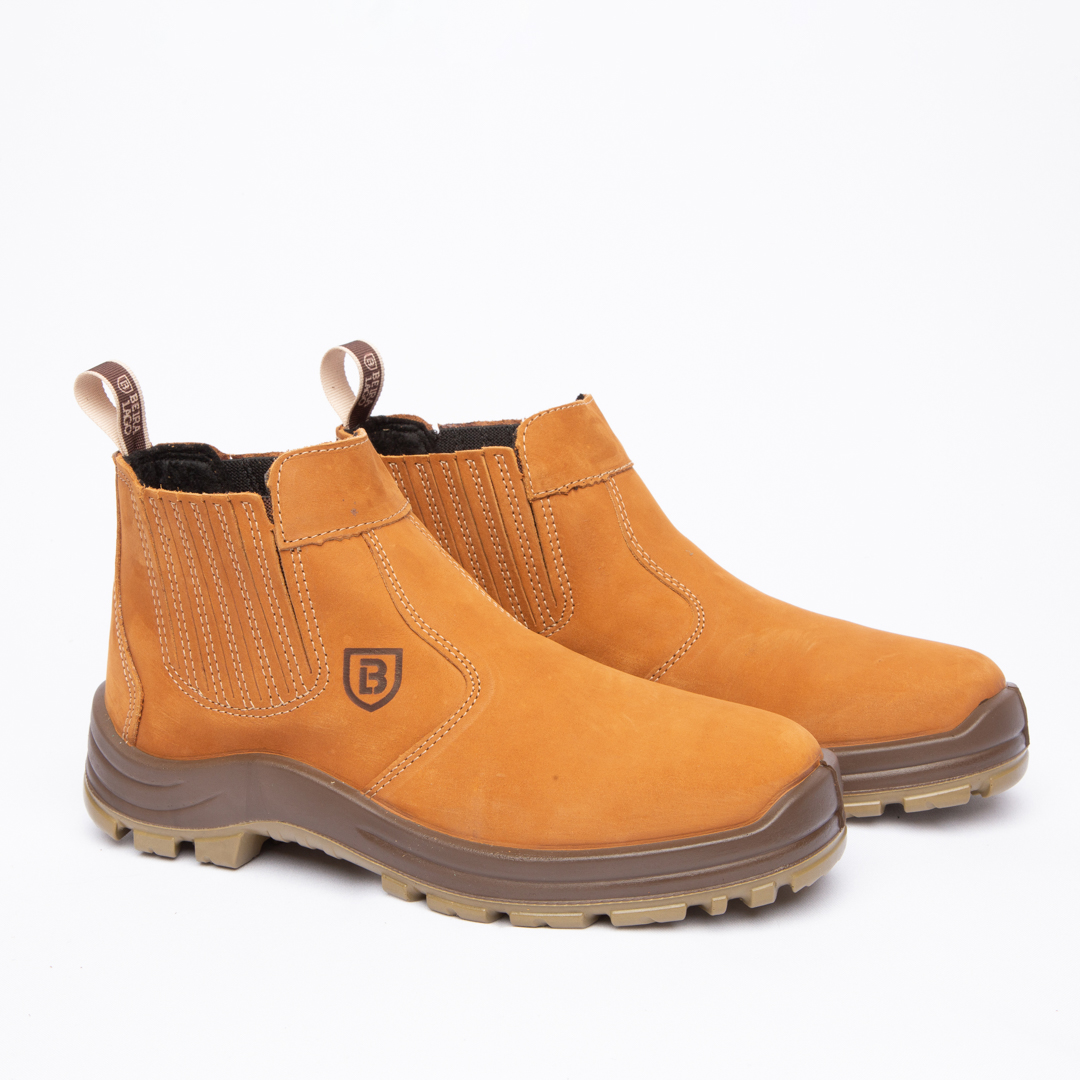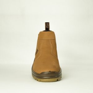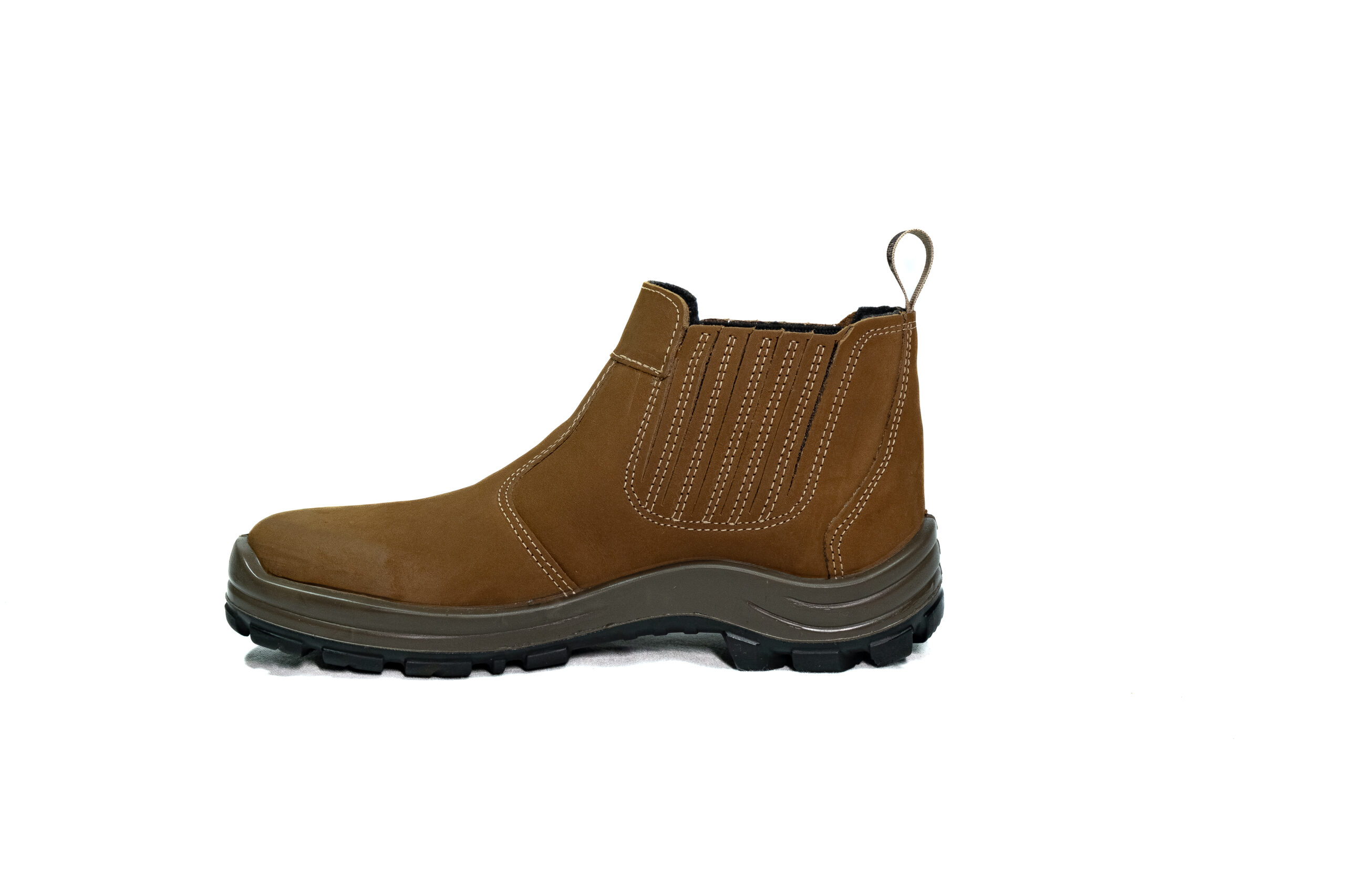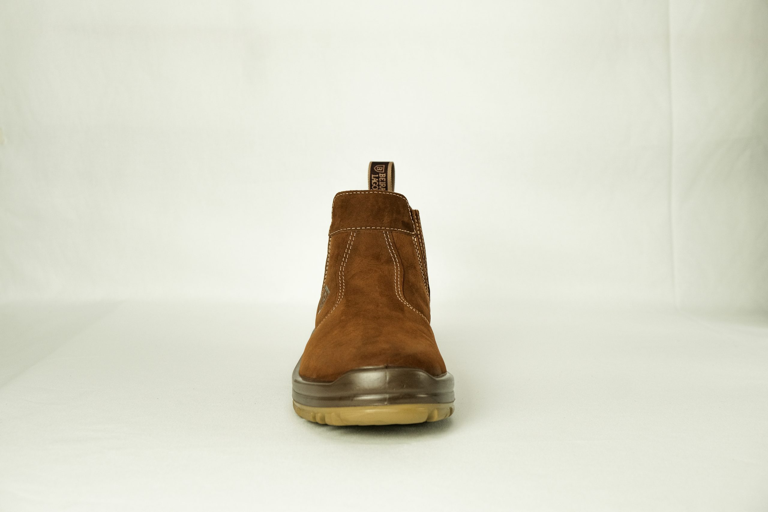 Botina sanfonada injetado bi densidade em PU Poliéter, couro nobuck.