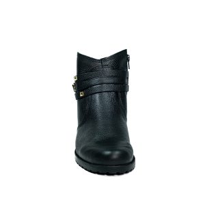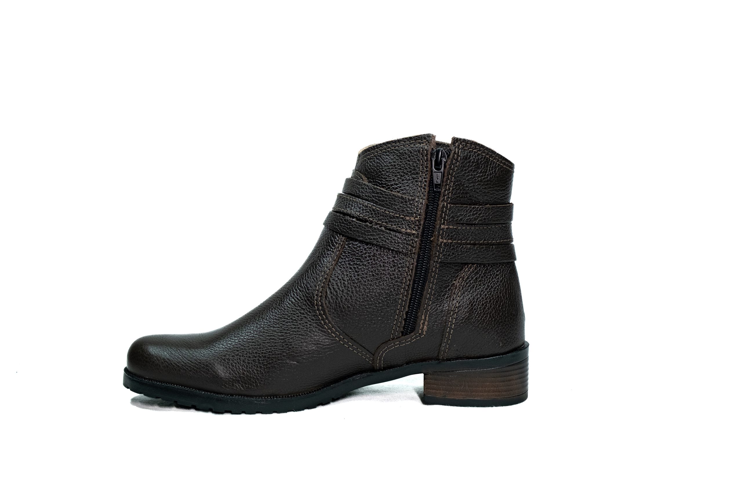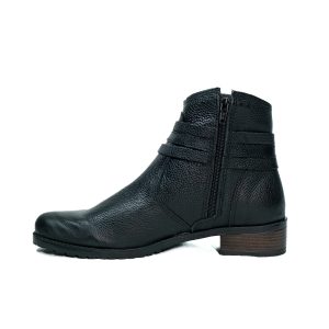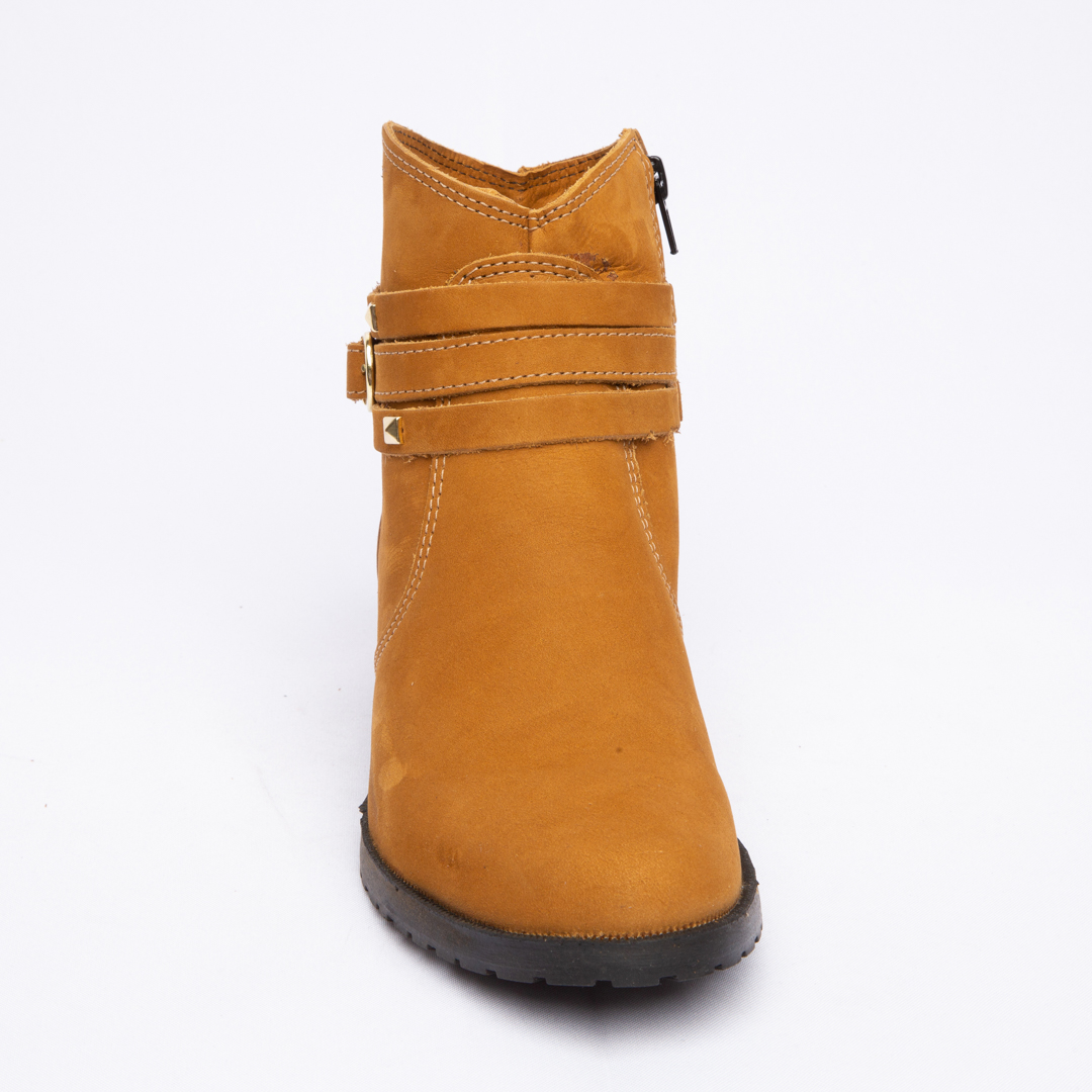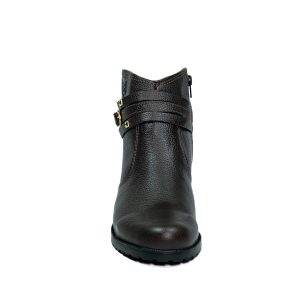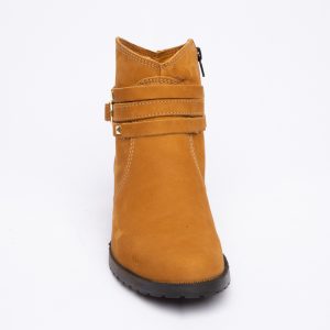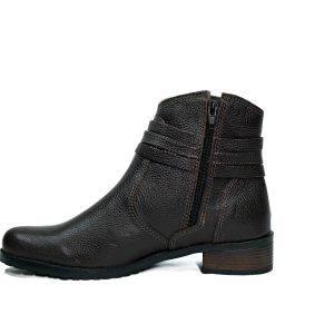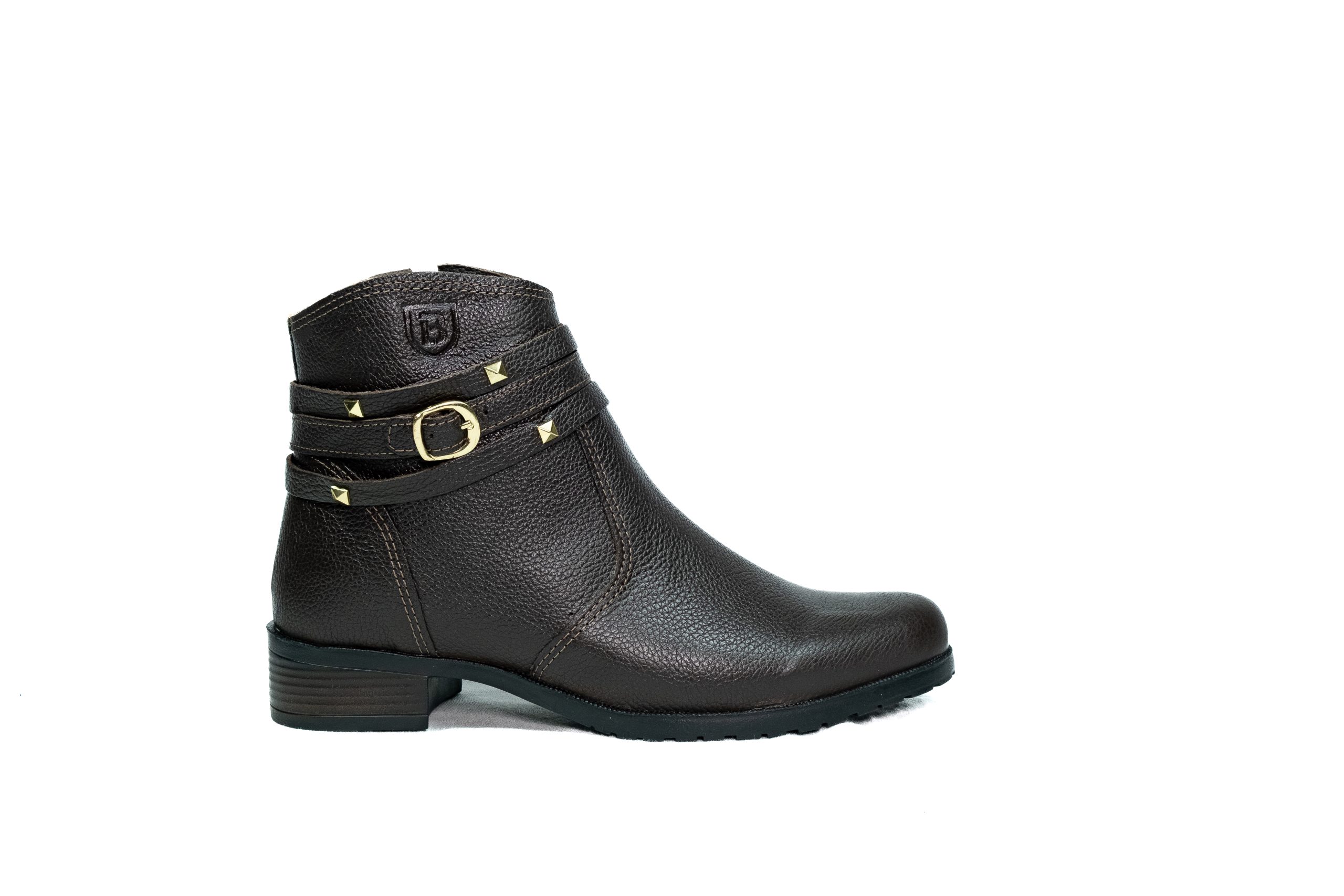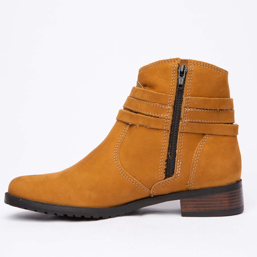 Botinha feminina com zíper, em couro napa e nobuck, solado de borracha.
