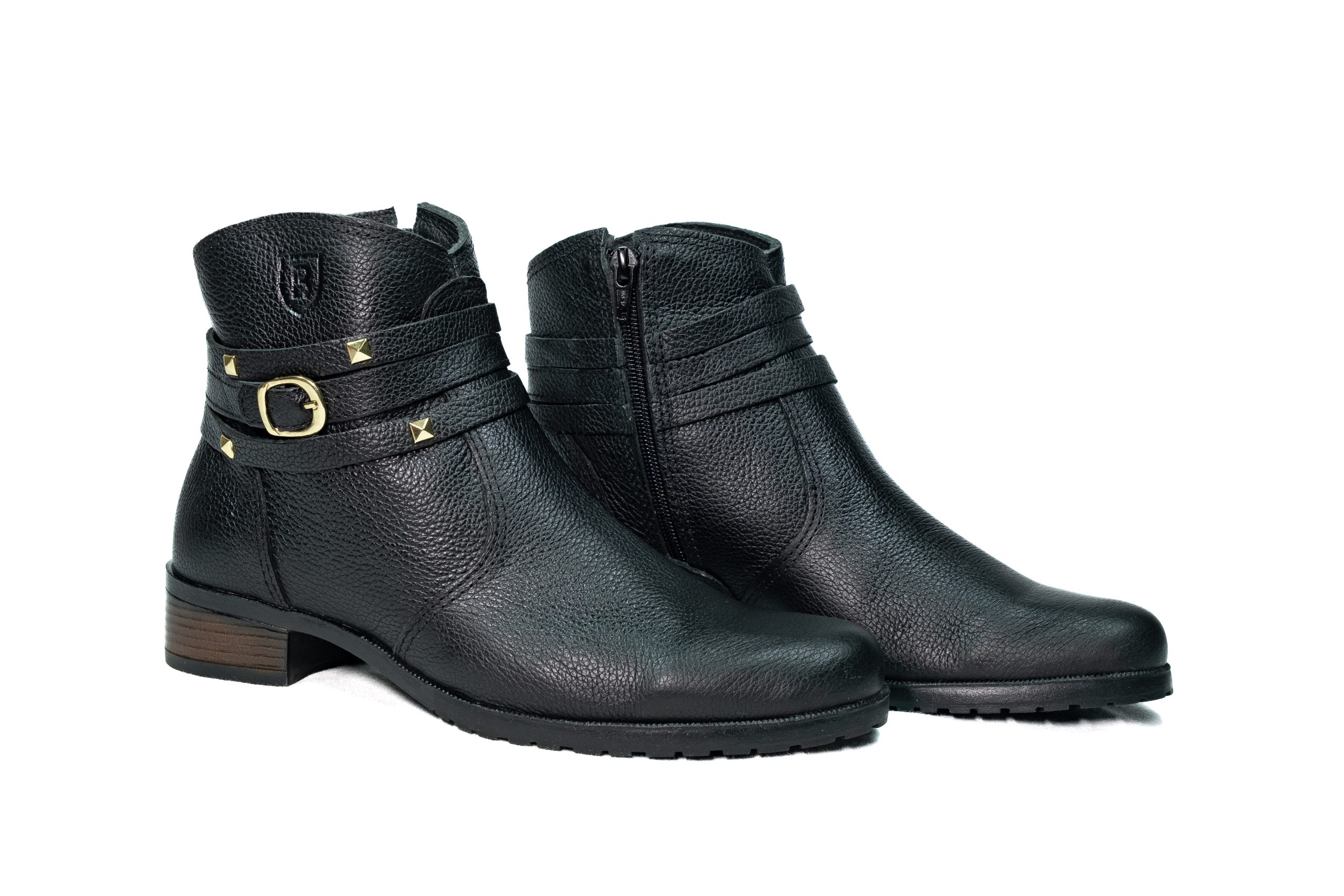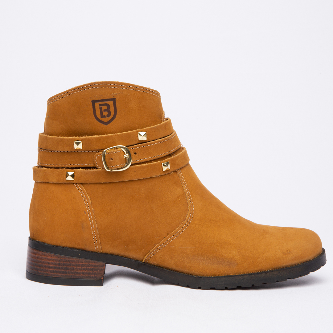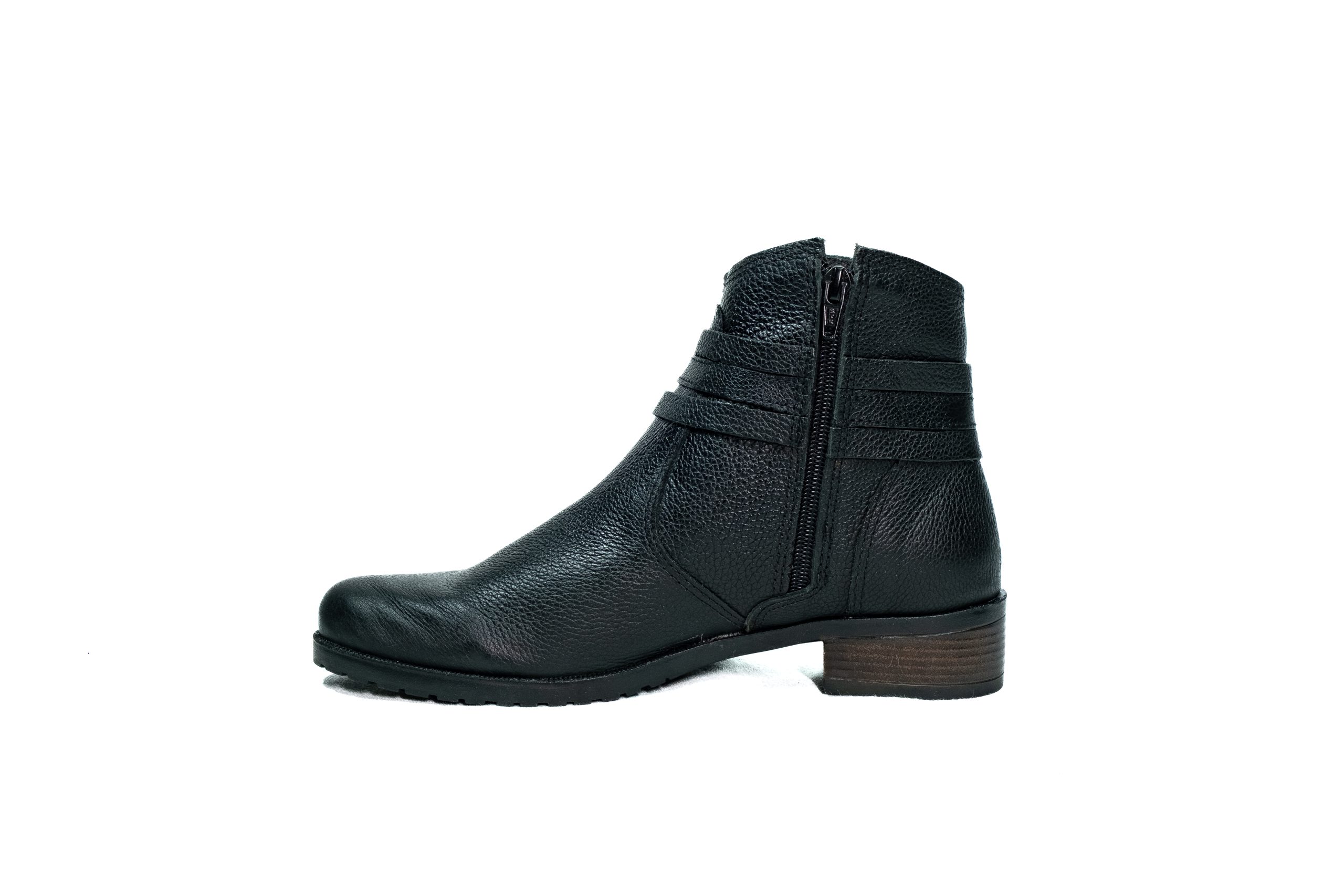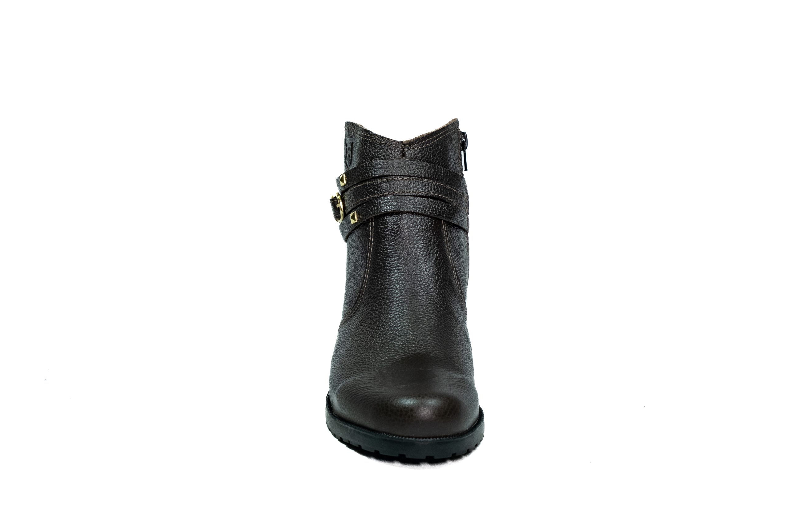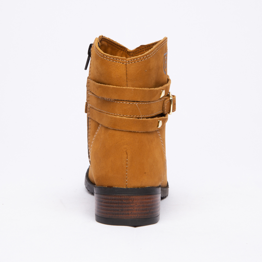 Botinha feminina com zíper, em couro napa e nobuck, solado de borracha.