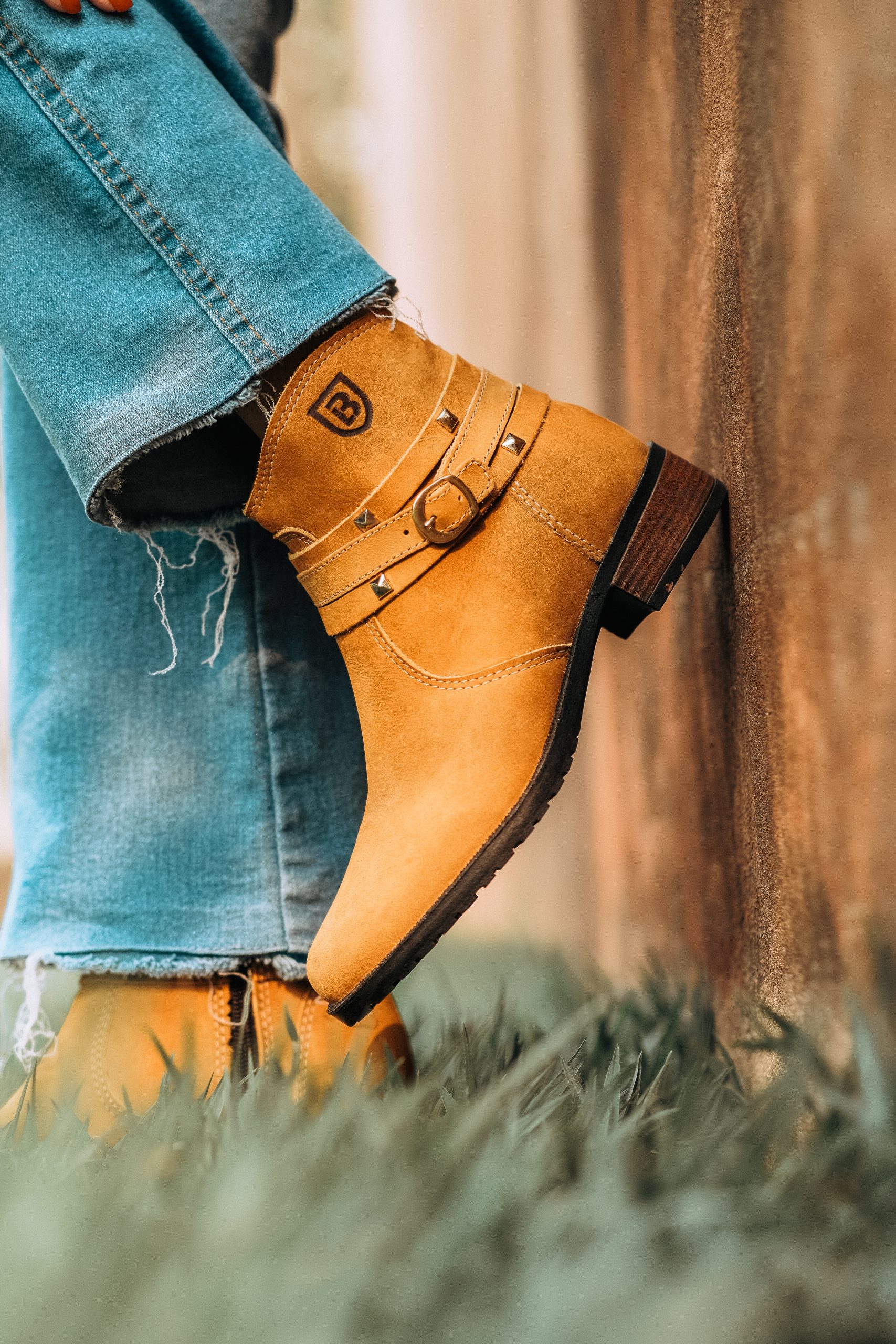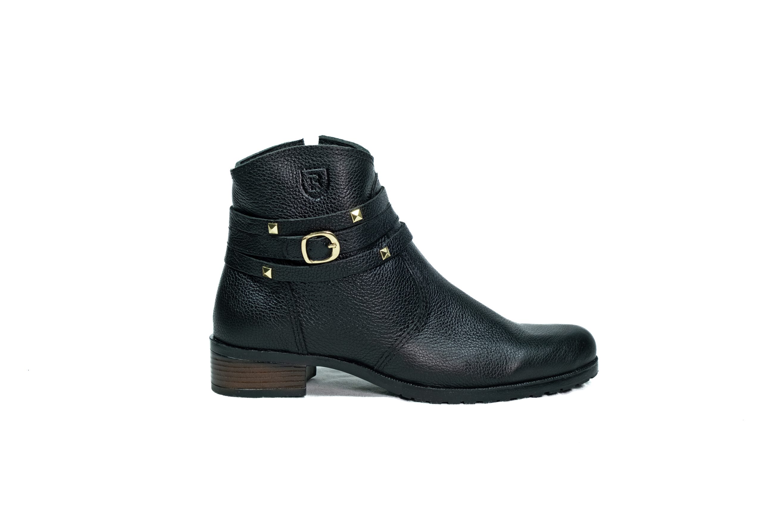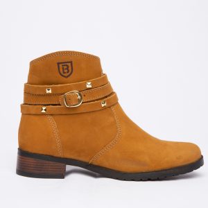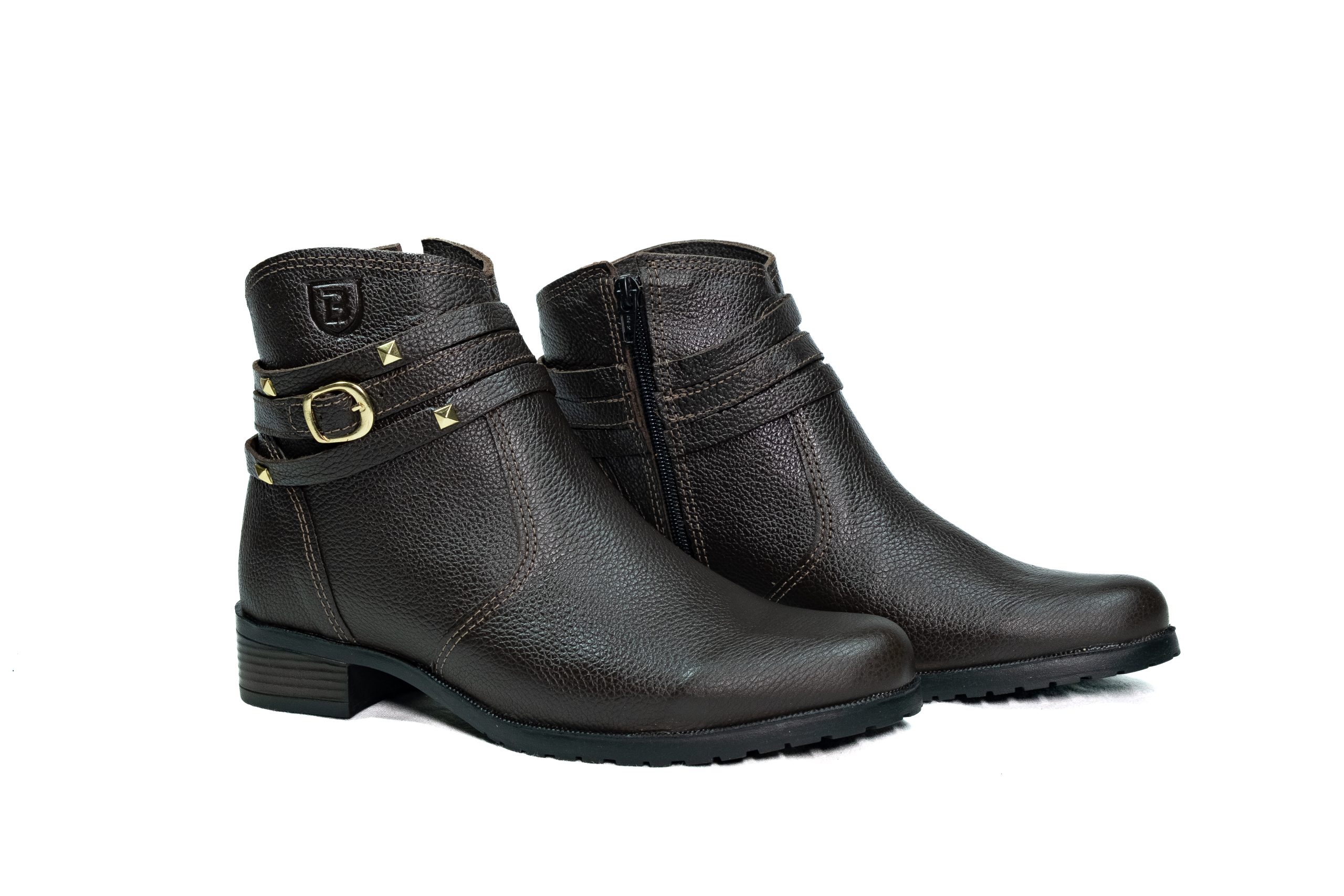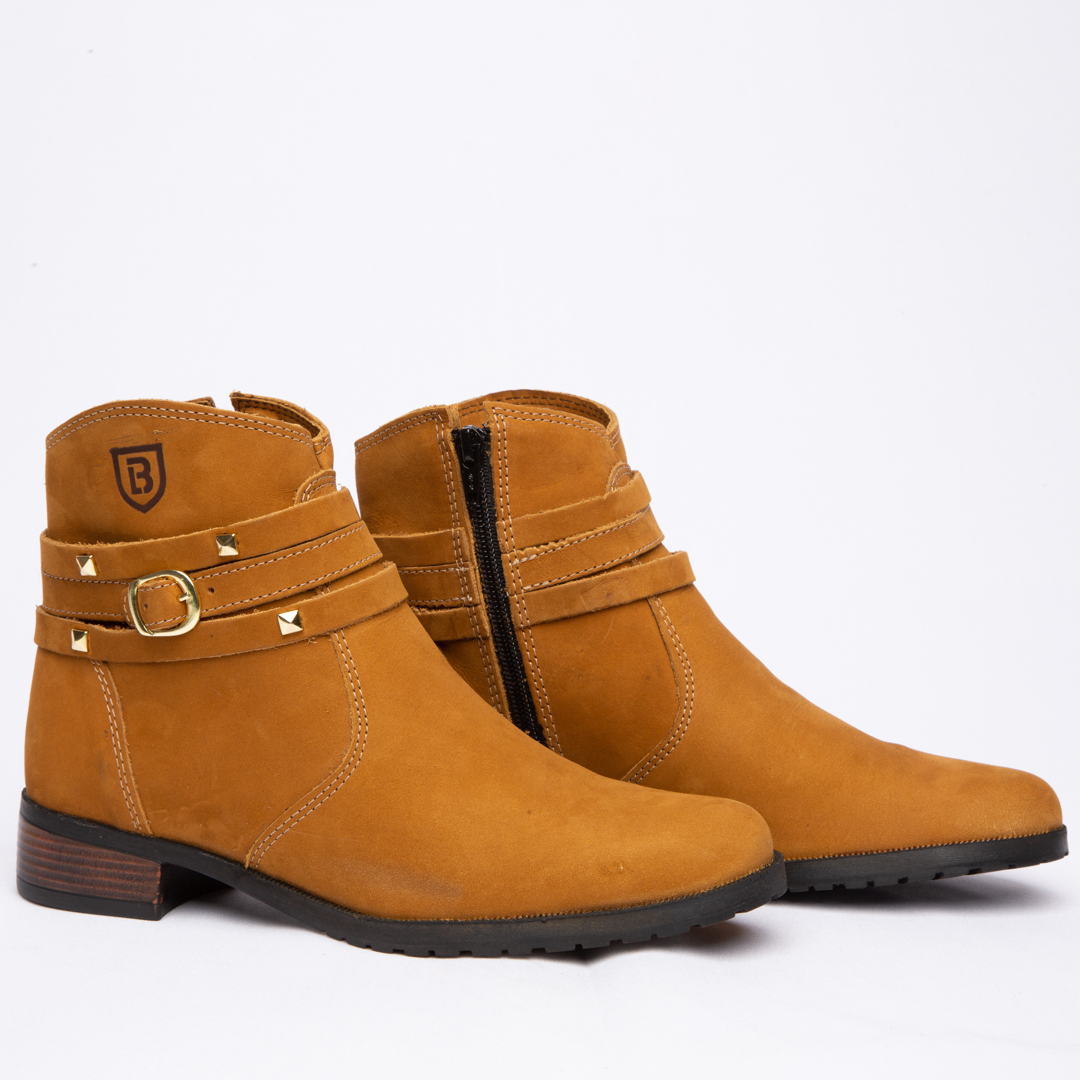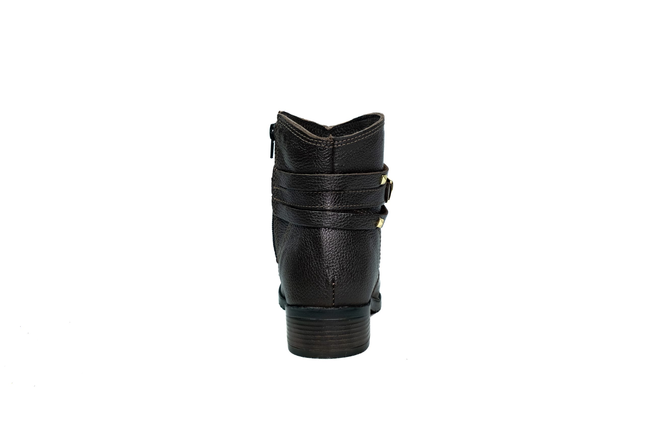 Botinha feminina com zíper, em couro napa e nobuck, solado de borracha.