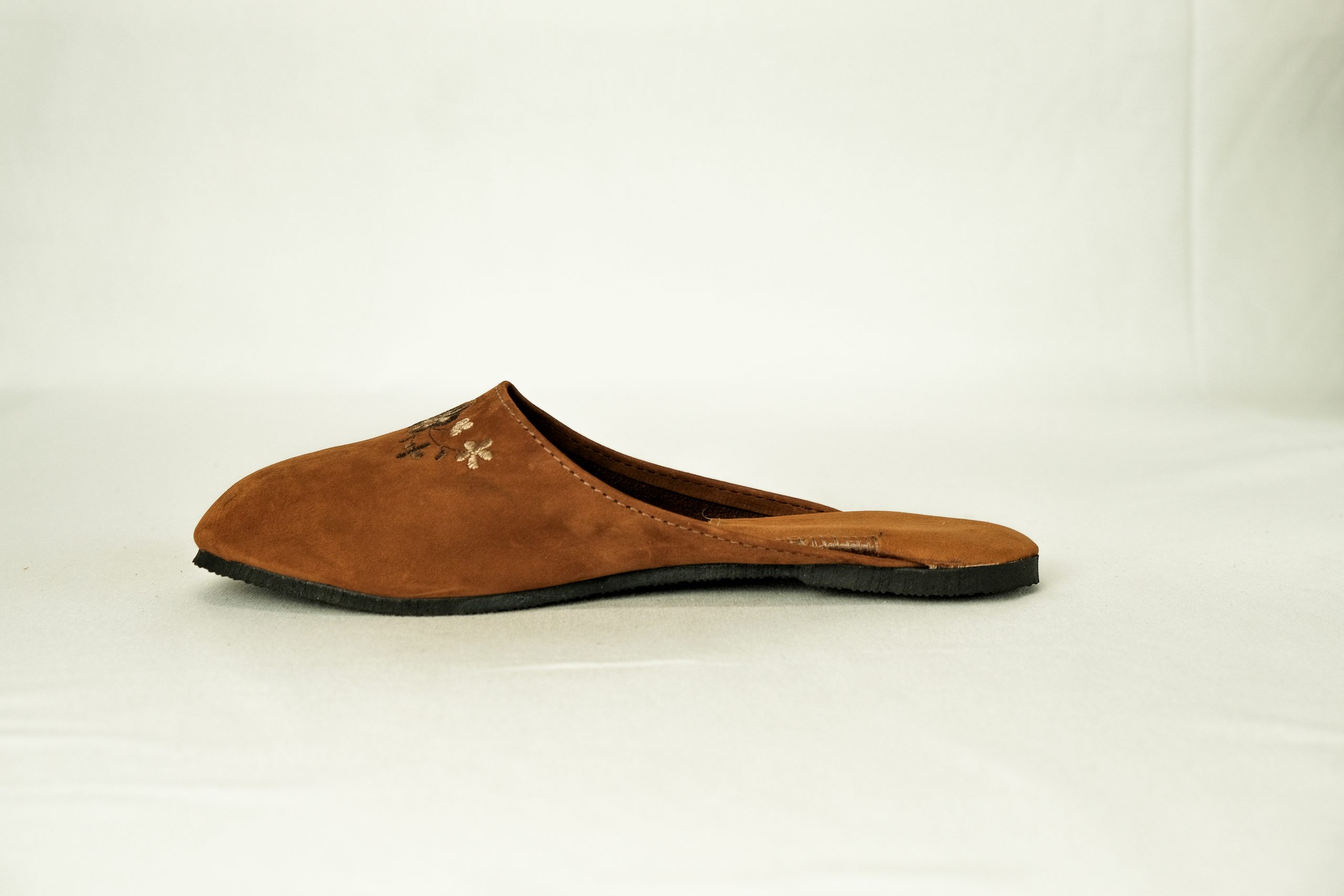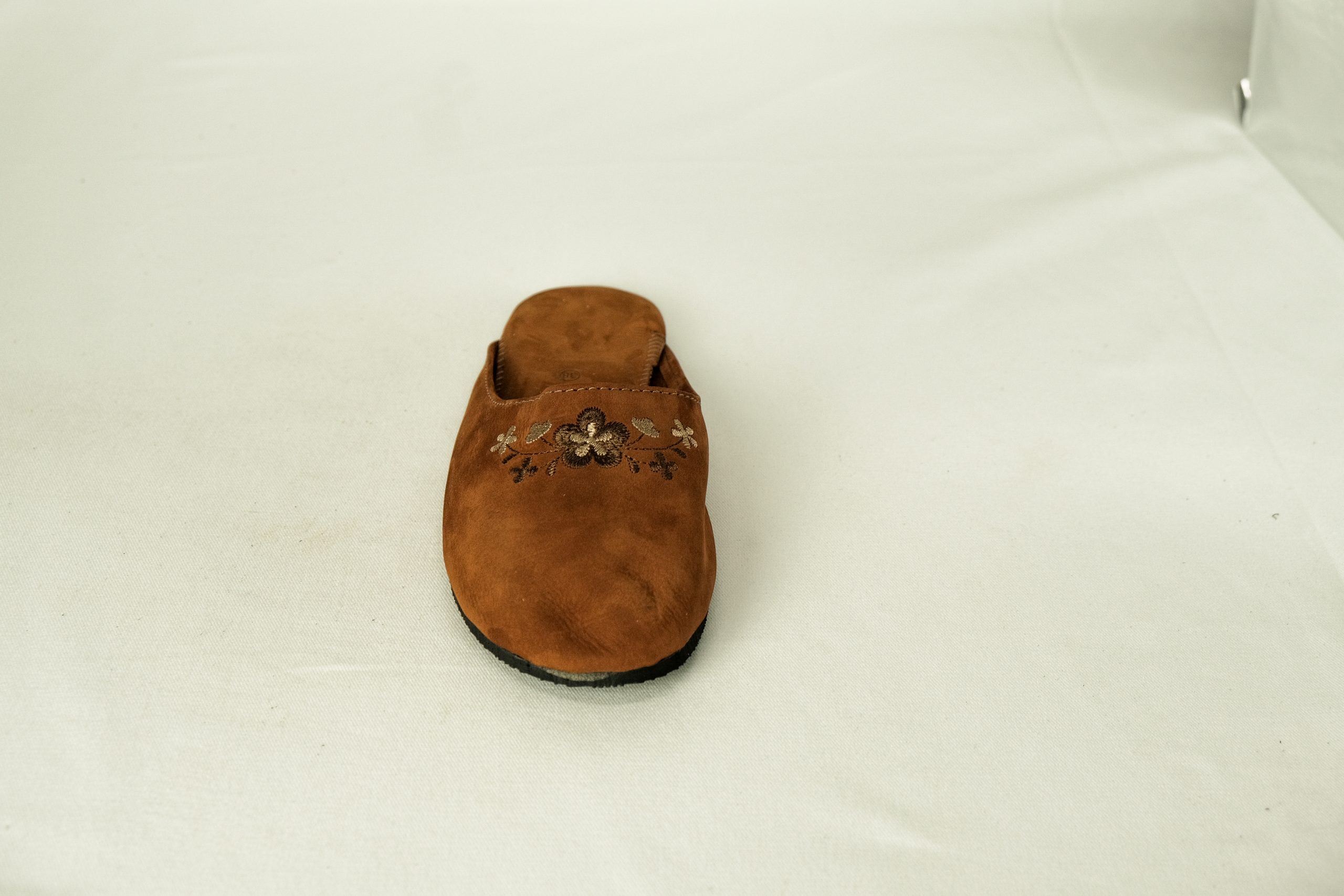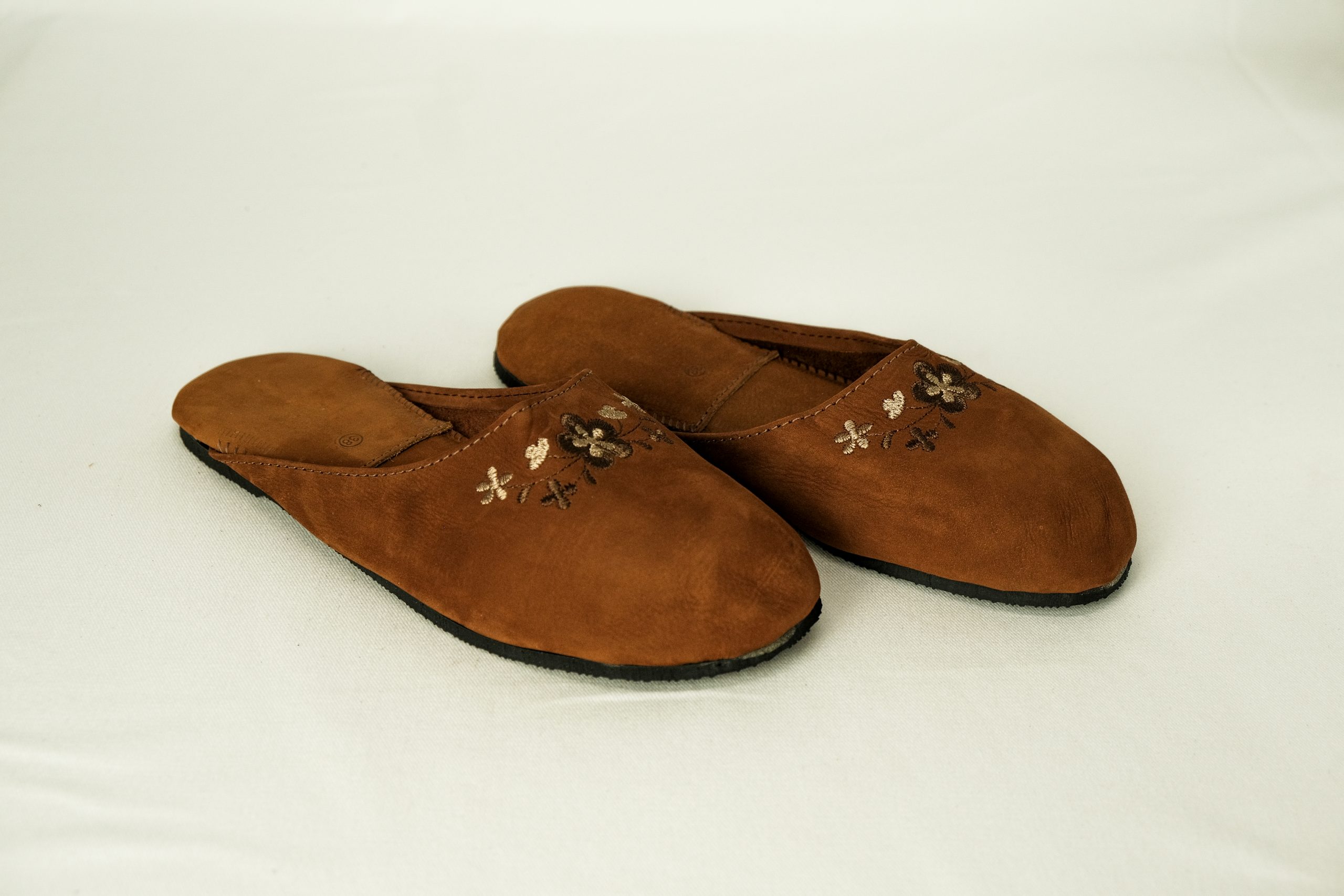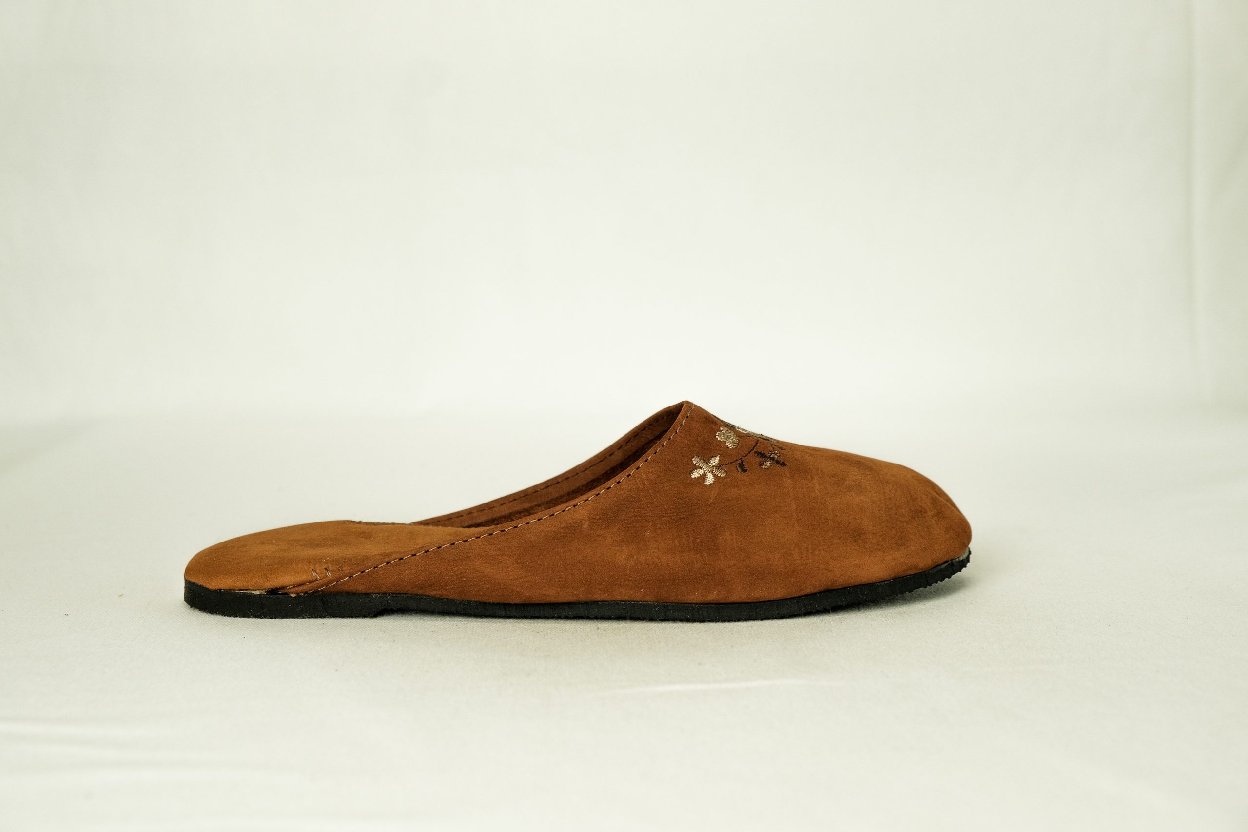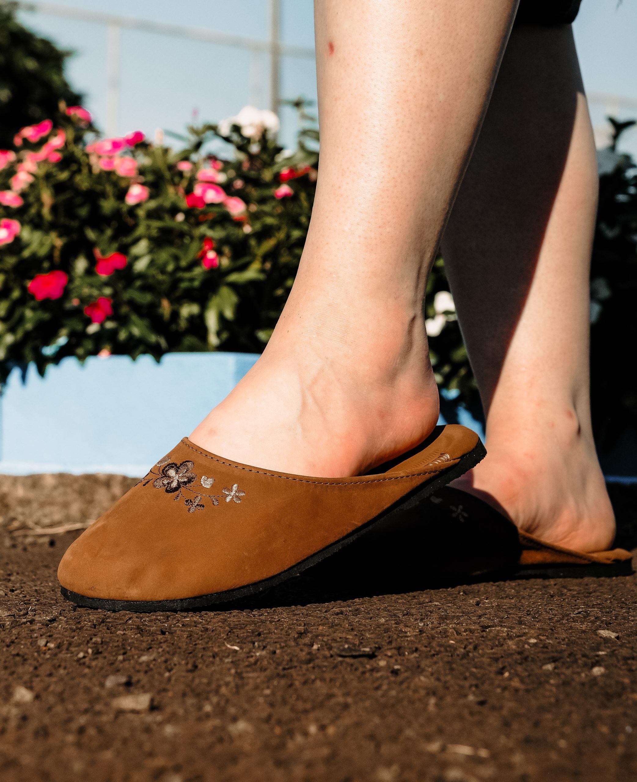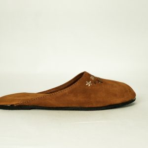 Chinelo campeiro em couro, com bordado, solado de borracha.