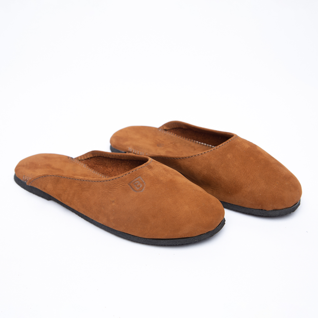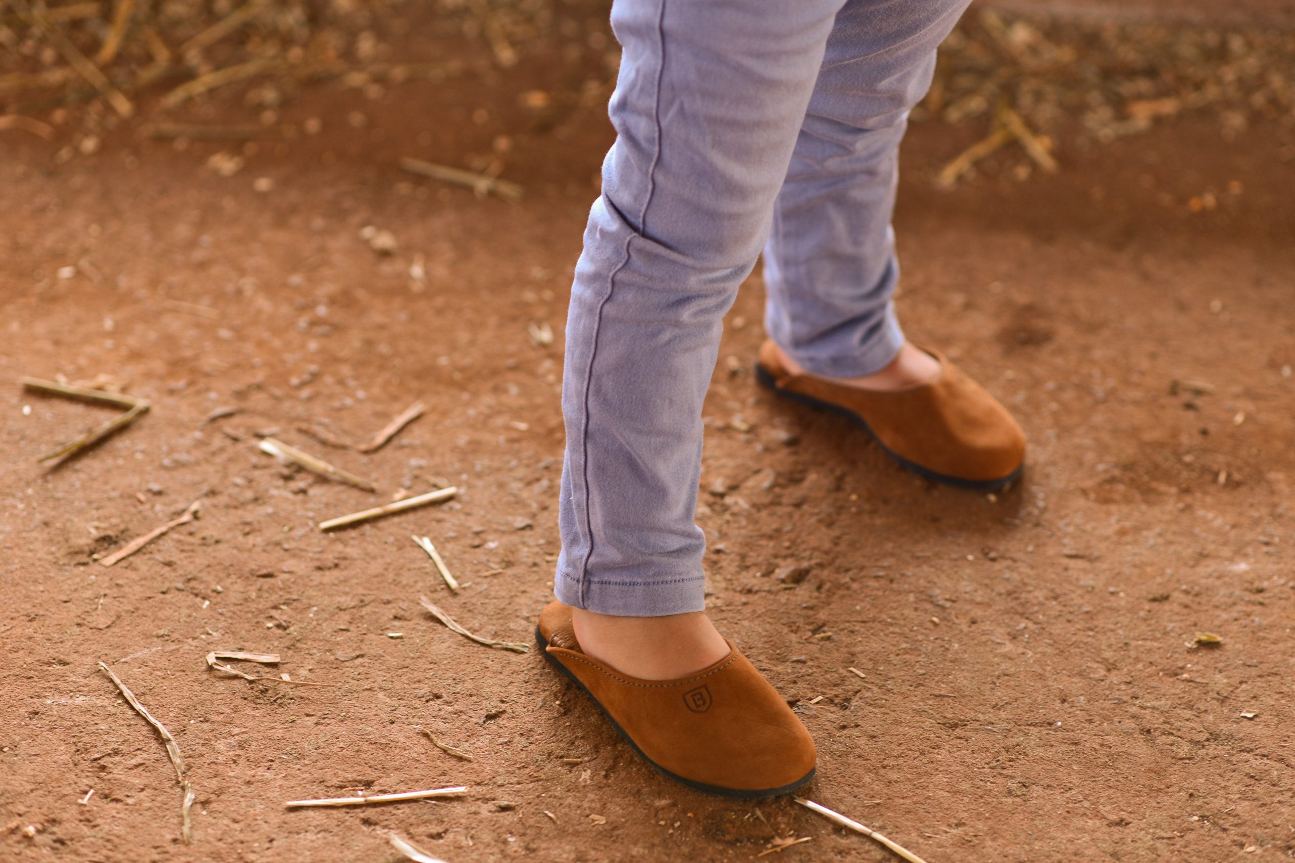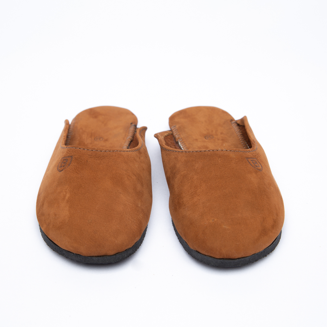 Chinelo campeiro infantil em couro nobuck e sola de borracha.