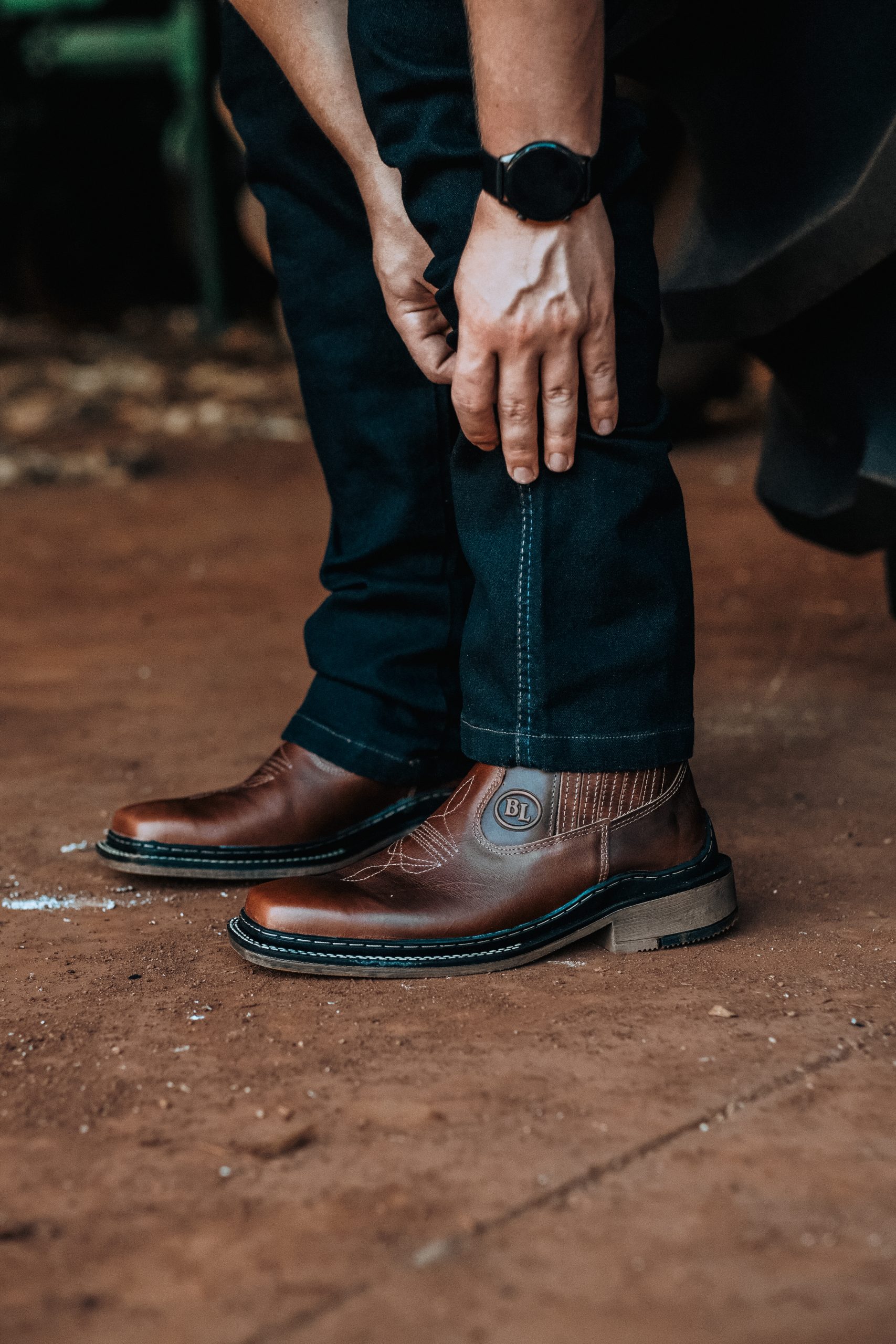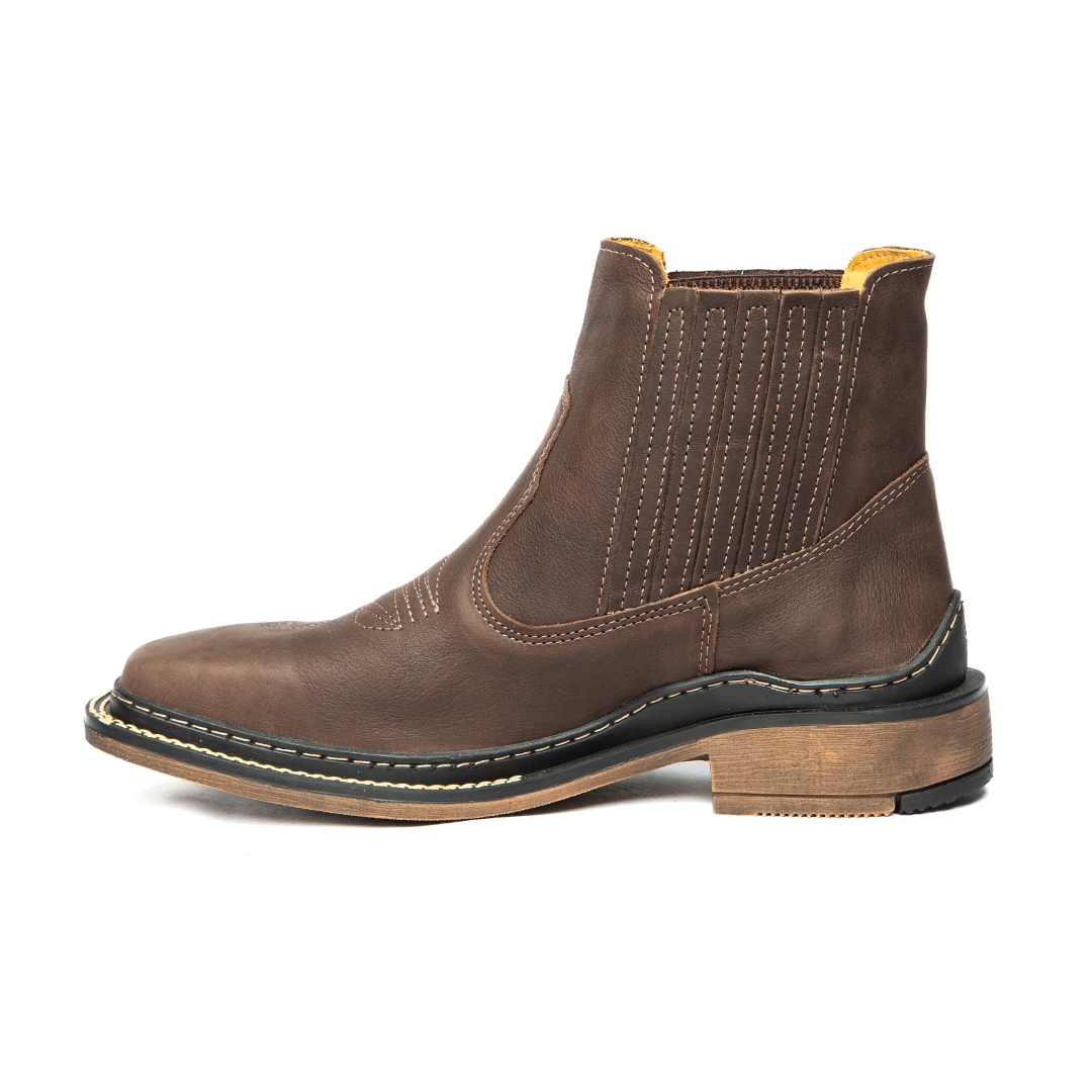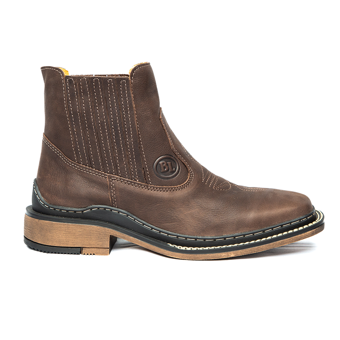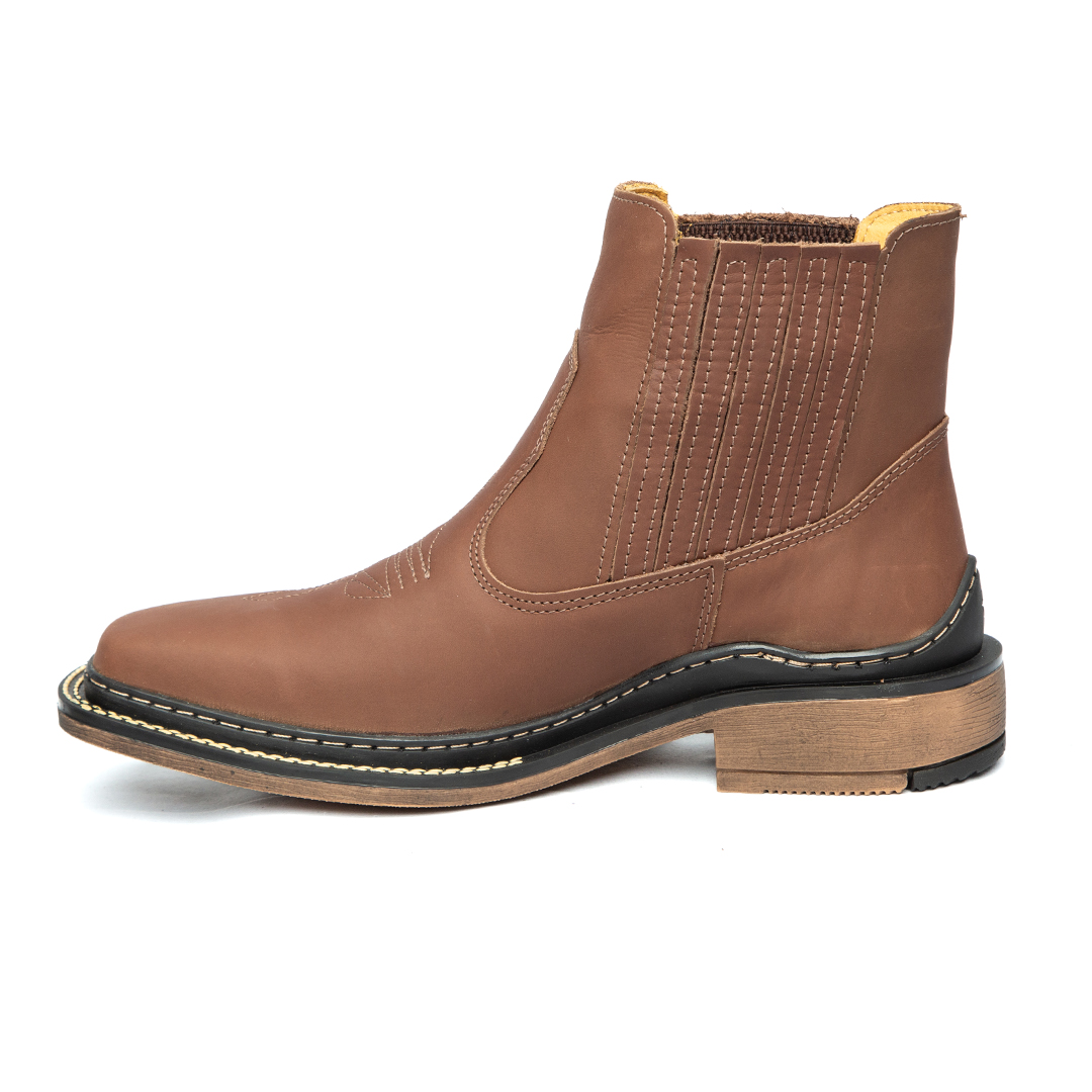 Bota texana cano baixo masculina forrada em couro.